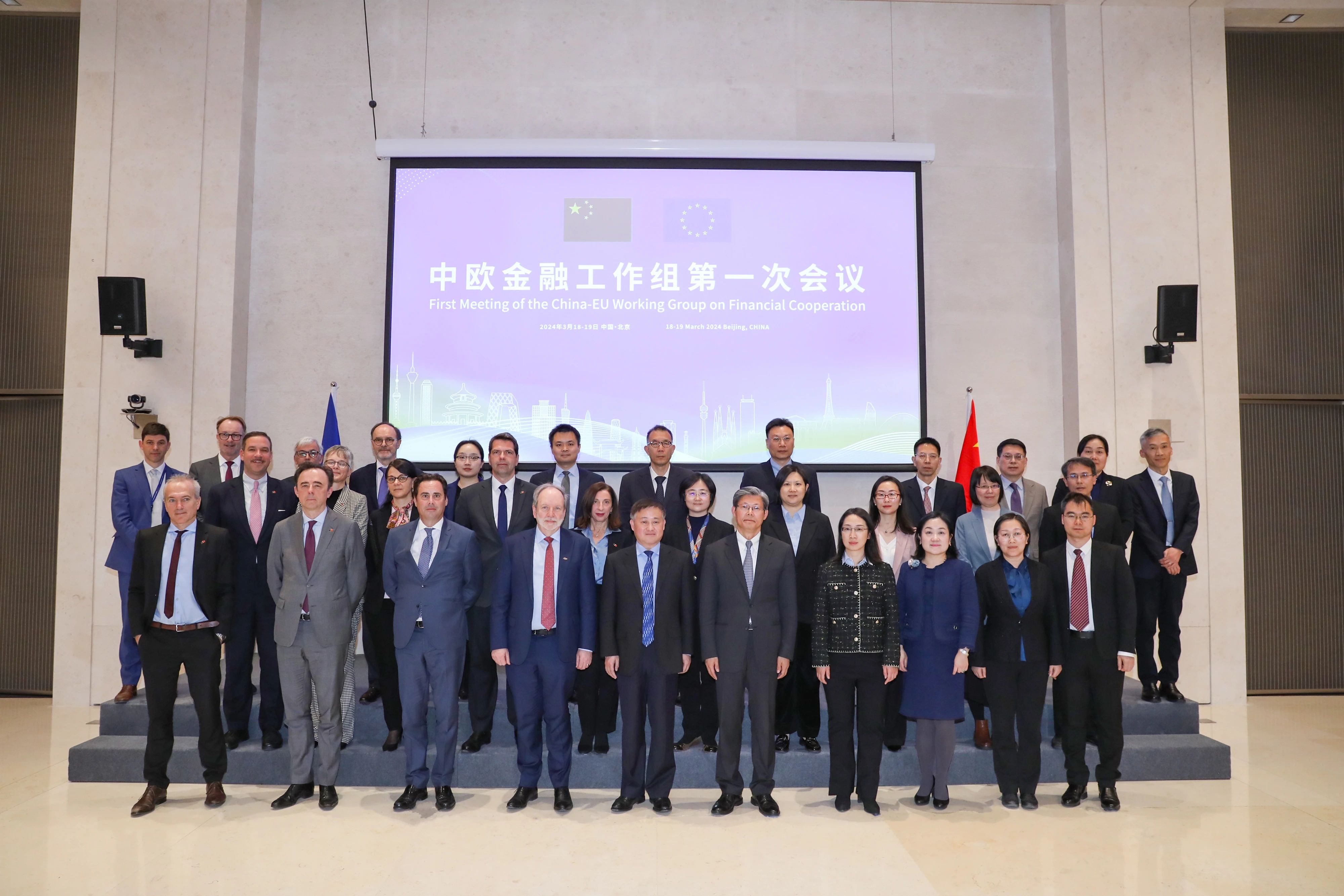中國人民銀行行長潘功勝與歐盟駐華大使庹堯誨出席中歐金融工作組第一次會議並致辭,中國人民銀行副行長宣昌能和歐盟委員會金融穩定、金融服務和資本市場聯盟總司長約翰·貝里根共同主持會議。國家金融監管總局、中國證監會、國家外匯局,以及歐洲中央銀行、歐洲銀行管理局、歐洲證券和市場管理局、歐洲保險和職業養老金管理局、歐洲單一處置委員會、歐盟駐華代表團等相關部門參會。