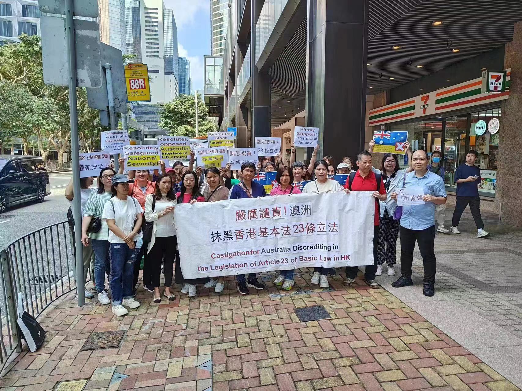 另外,亦有大批市民前往澳洲駐港總領事館抗議,堅定支持《維護國家安全條例》立法,譴責澳洲的干預抹黑。