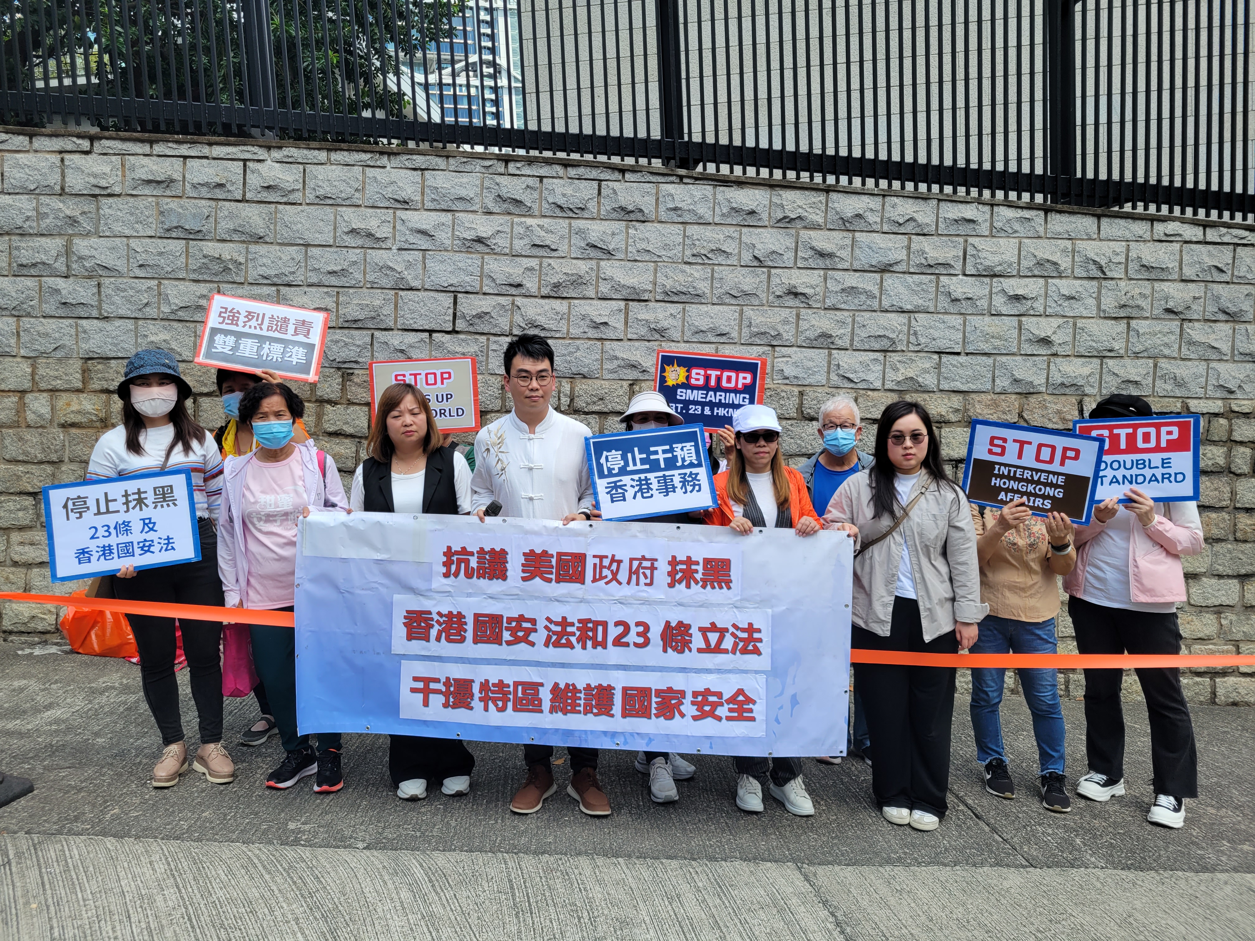 港區省級政協委員聯誼會今日(24日)上午前往美國駐港澳總領事館抗議,該會表示,維護國安天經地義,強烈譴責美國妄議干涉基本法23條立法,堅決反對美國國務院發言人的偏頗和誤導言論。