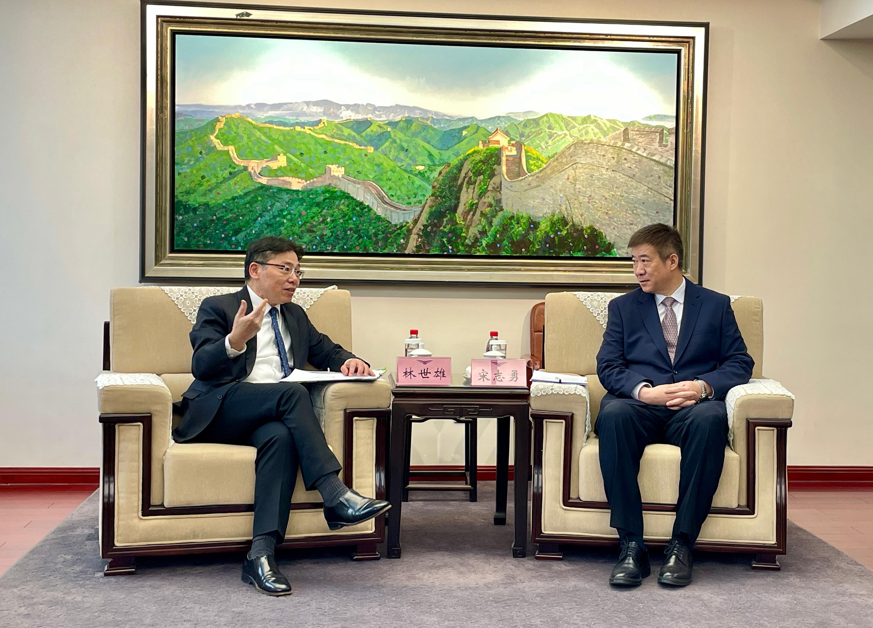 林世雄昨日抵達北京後與國家交通運輸部部長李小鵬會面,向他介紹香港在海陸空運輸及物流方面的發展,以及就如何推進粵港澳大灣區高質量發展交換意見。他昨日亦到訪北京大興國際機場,參觀塔台及航站樓以了解其運作。