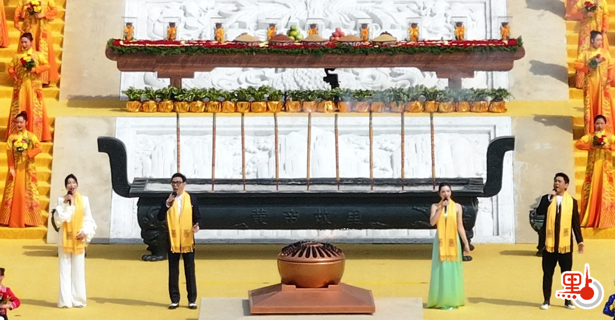 其中,港澳台各界知名人士和來自世界各地的優秀華人代表走到台前,浄手上香。來自香港地區的鍾鎮濤、台灣地區的朱孝天和澳門地區的麥嘉欣以及內地的曹芙嘉,兩岸四地同歌《黃帝頌》,共聚家國情。
