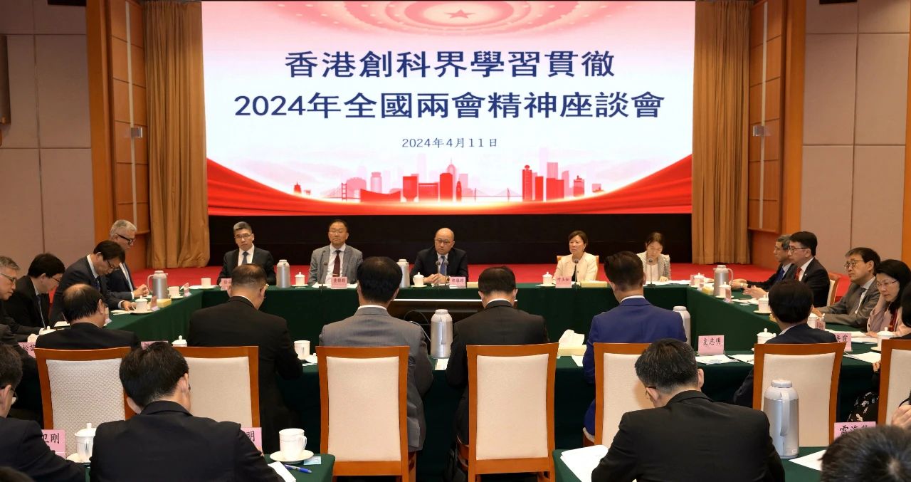 【點新聞報道】4月11日,粵港澳大灣區院士聯盟、香港科技創新聯盟、京港學術交流中心聯合舉辦香港創科界學習貫徹2024年全國兩會精神座談會。中央政府駐港聯絡辦主任鄭雁雄應邀出席並作交流分享。中央政府駐港聯絡辦副主任盧新寧、秘書長王松苗,香港創科界代表人士共60餘人參加。