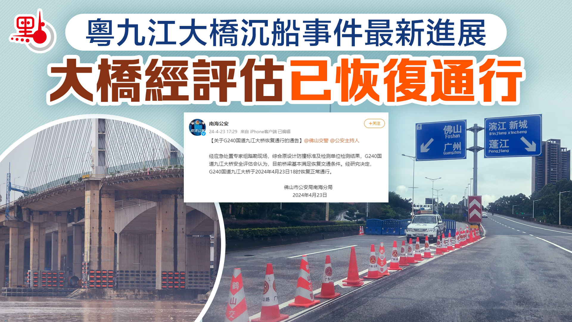 粵九江大橋沉船事件最新進展 大橋經評估已恢復通行