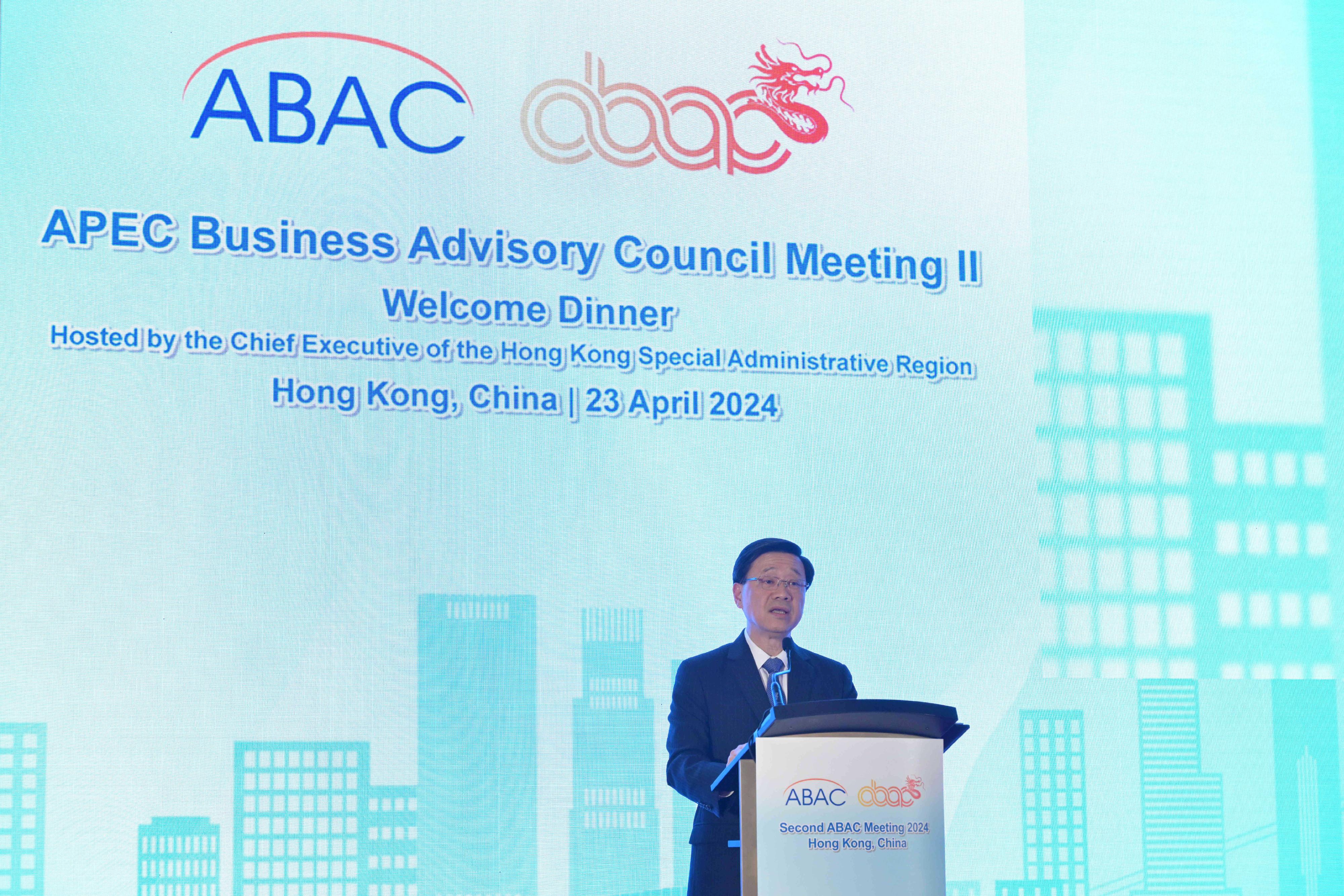 李家超在歡迎晚宴致辭時強調,中國香港積極參與亞太經合組織。他說:「我們堅定支持區域經濟融合,更相信全方位合作對克服全球共同面對的各種挑戰至關重要。」他指,亞太經合組織的各個經濟體除了是優良的商貿夥伴外,也是培育創新理念的搖籃,推動亞太區包容、創新和可持續增長。中國香港重視理事會和其商界領袖在實現這些共同目標過程中所提供的真知灼見。