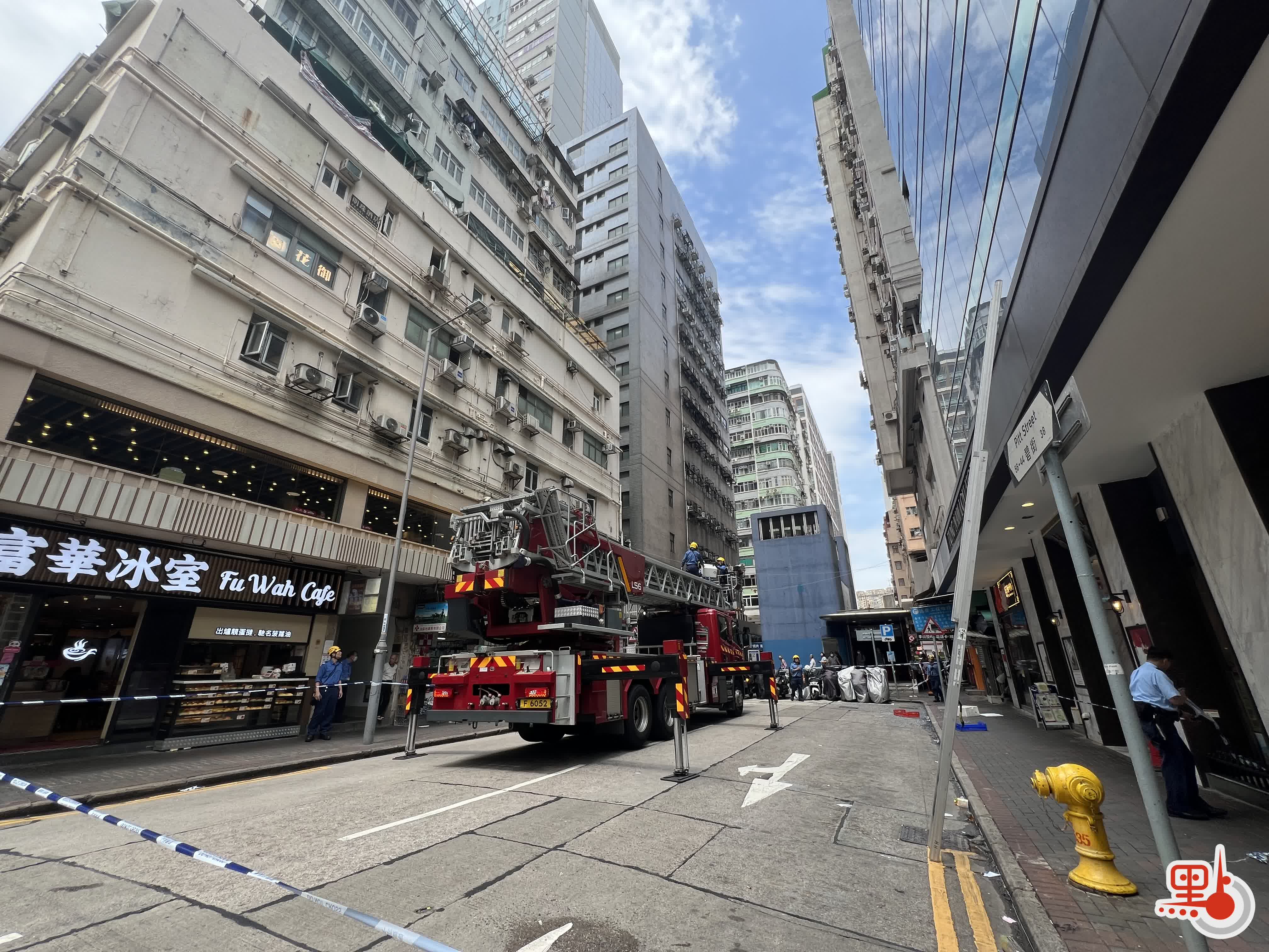 油麻地東南樓酒店爆玻璃 消防升雲梯清除