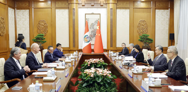 王毅表示,中秘都是文明古國,從歷史長河中汲取營養和智慧。我們都珍惜和平反對戰爭、致力團結反對分裂、尋求合作反對對抗,都支持國際關係民主化、反對單邊和霸凌行徑,都支持聯合國在國際事務中發揮主導作用、反對編織各種「小集團」「小圈子」,都支持不同社會制度的國家和平共處、反對陣營對立和大國對抗。中秘是真誠互信的好朋友、好夥伴。去年11月,習近平主席同博魯阿爾特總統在舊金山成功會晤,為推進中秘關係發展指明方向。中方願同秘方共同落實好兩國元首重要共識,弘揚傳統友誼,以高水平政治互信帶動高質量互利合作,推動中秘全面戰略夥伴關係邁上新台階。