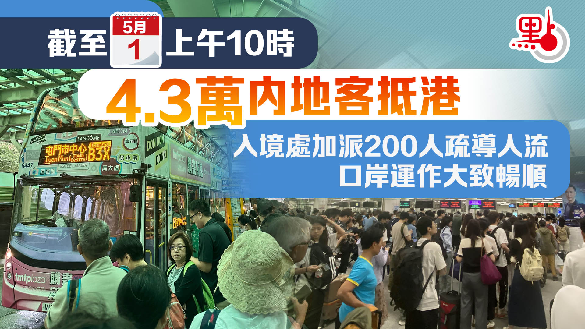 (有片)五一|截至上午10時4.3萬內地客抵港 入境處加派人手疏導人流