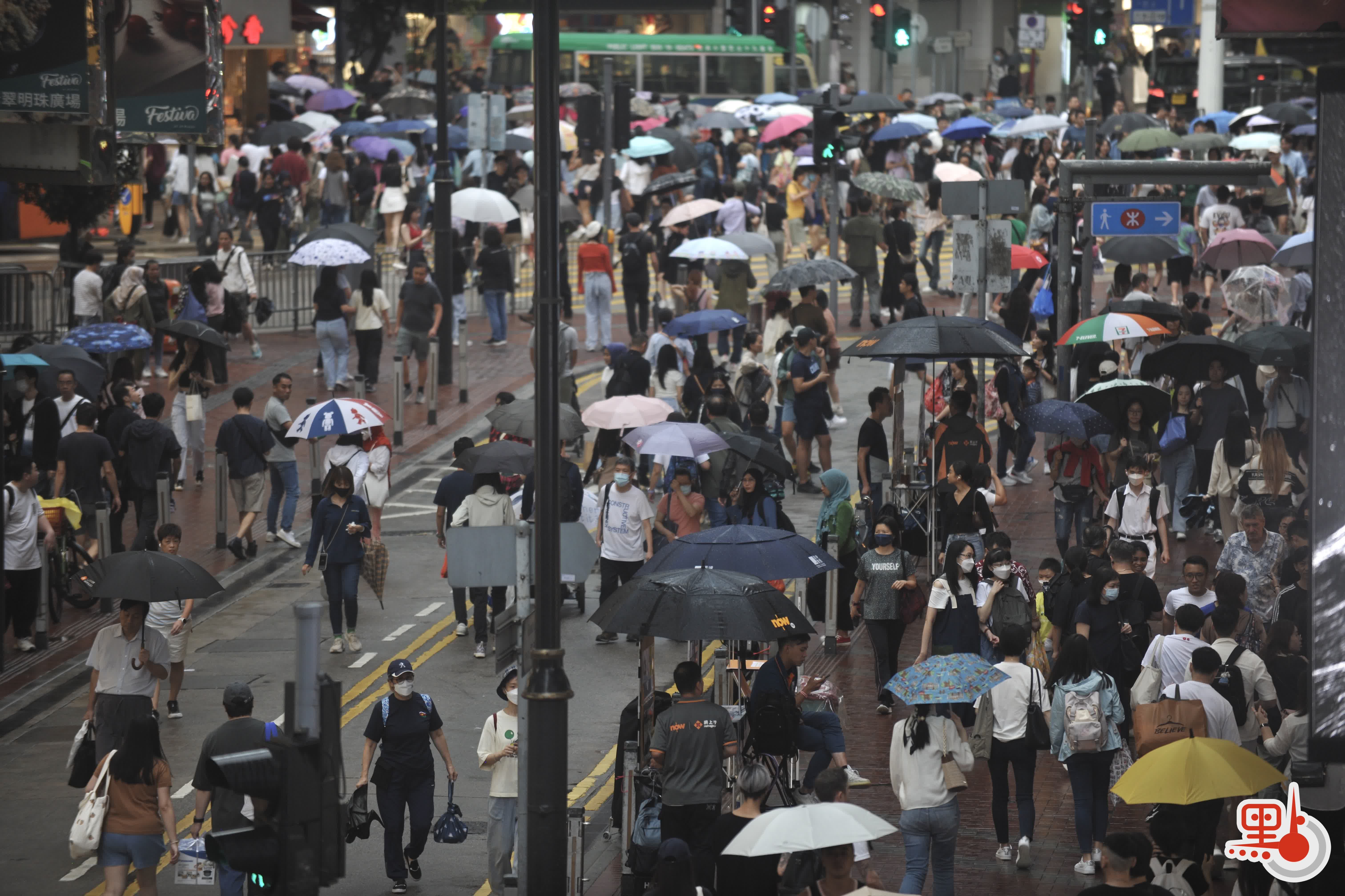 (有片+多圖)五一|天雨無阻行街興致 遊客擔遮拖篋購物