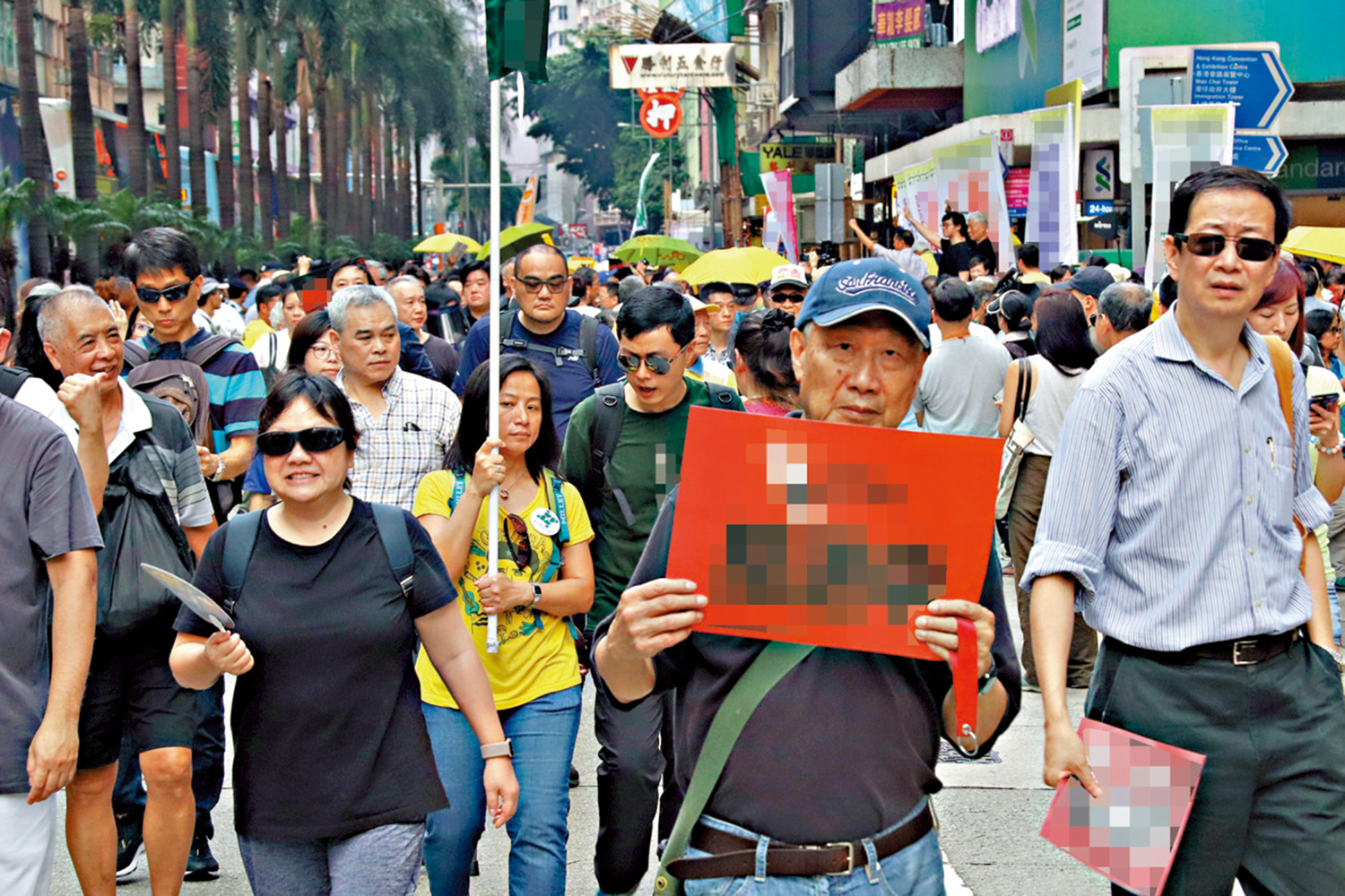 2019年4月28日,民陣舉行反對修訂逃犯條例的遊行,黎智英在前一天發訊息給陳沛敏,指「請想想有什麼我們還可做『催谷』市民明天上街?現在情況實在太靜,好驚。」同時黎智英另發錄音訊息給陳沛敏提發有關漫畫家「尊子」設計的橫額,要求陳沛敏問李卓人的意見。陳沛敏供稱,「當時覺得黎生好重視嗰日(『4·28遊行』),所以嗰日都有印漫畫(海報)出嚟。」陳沛敏解釋,「黎生不斷send訊息話睇吓點先會多啲人上街,又話要幫民陣印海報……」所以海報特意為「4·28民陣遊行」設計,額外印在《蘋果日報》的「底版」,而該橫額上沒有新聞,只有政治口號和圖案。