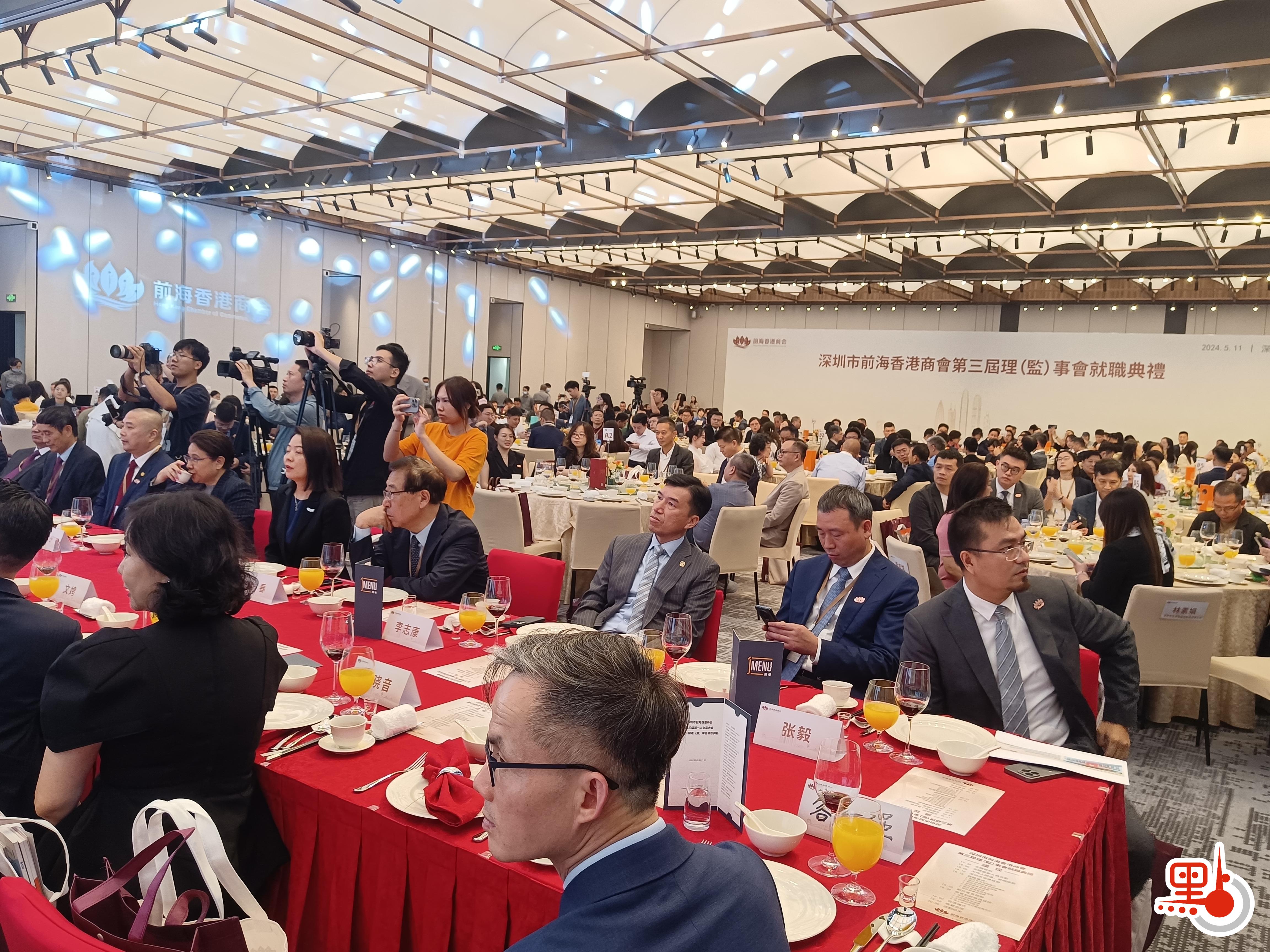 【點新聞報道】深圳市前海香港商會今日(11日)晚上舉行深圳市前海香港商會第三屆理(監)事會就職典禮,中共深圳市委常委、深圳市委統戰部王強部長,深圳市委常委,寶安區委書記,前海黨工委書記王守睿等出席就職典禮。全國政協常委、粵港澳大灣區企業家聯盟主席、新華集團主席蔡冠深博士被推選為商會第三屆會長。就職典禮上前海香港商會分別發布了深港金融「南北通」、法律服務「深港通」等,以促進深港深入融合。