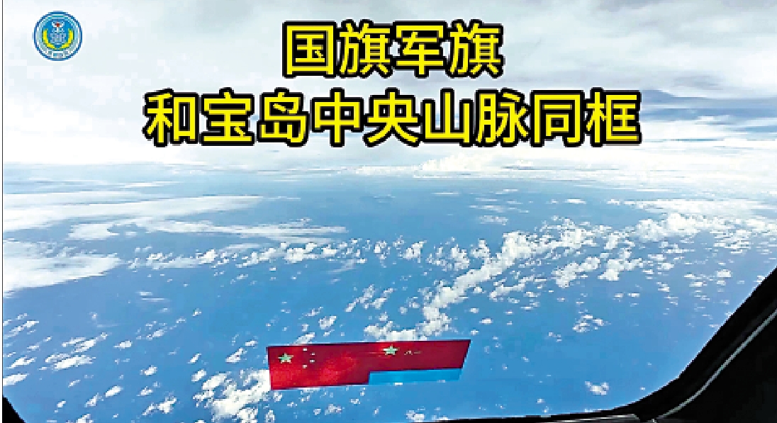 5月24日,中國人民解放軍東部戰區持續位台島周邊開展「聯合利劍─2024A」演習,島鏈內外一體聯動,開展艦機協同、對海突擊、對陸打擊等科目訓練,檢驗多域協同、聯合打擊等實戰能力。演練中,環台島戰巡的飛行員拍下了這樣震撼人心的一幕:國旗軍旗與寶島中央山脈同框。