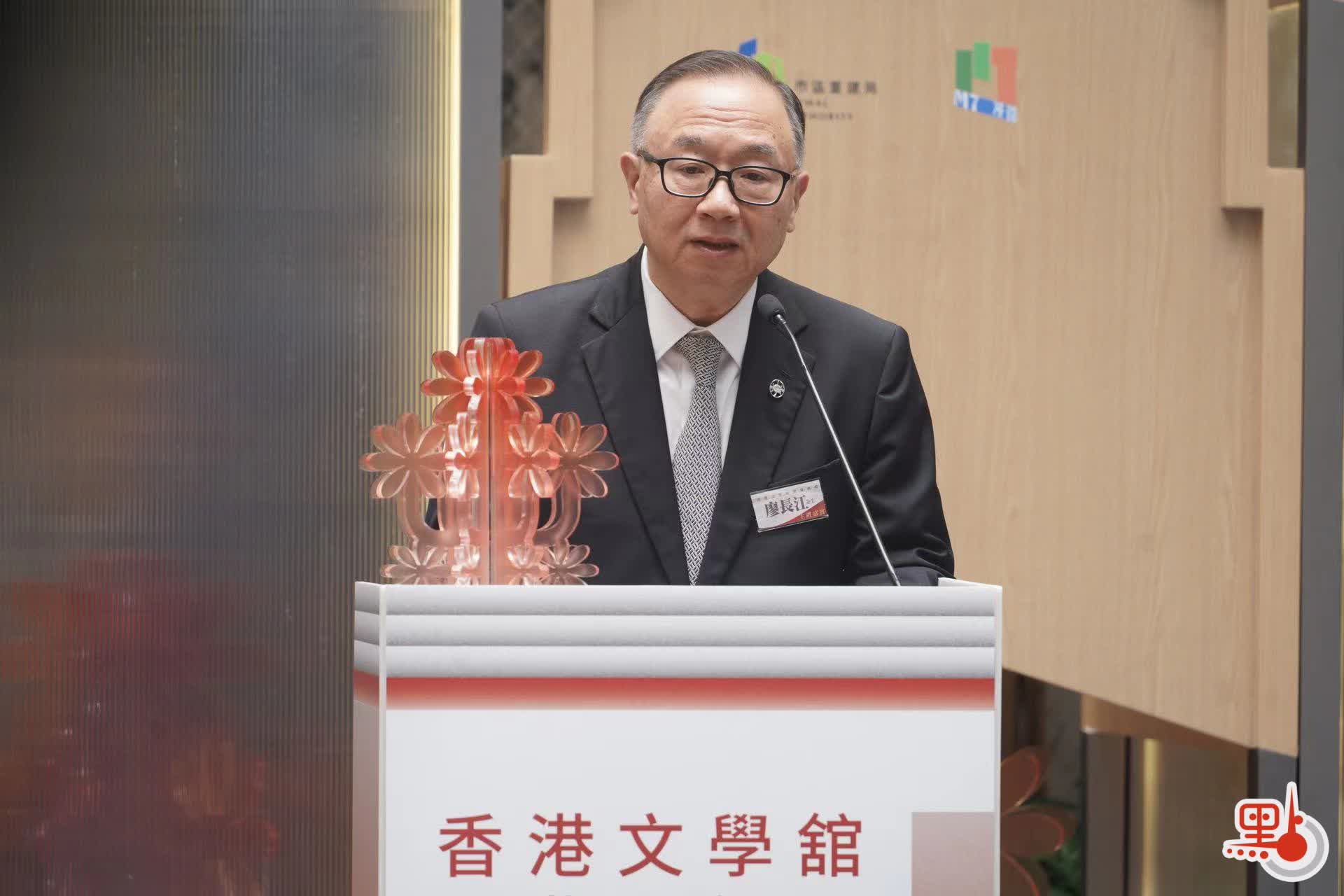 馬會副主席廖長江致辭時表示,文學藝術是人們認識和想象世界的一種基本方式,也是一個地方的精神支柱和文化靈魂,香港文學歷史悠久、豐富多元,對弘揚中華文化,推動文明交流共建意義重大。馬會不遺餘力支持興建香港文學舘,積極響應國家「十四五」規劃中,支持香港發展成為中外文化藝術交流中心的願景,期望香港文學舘的成立,能夠向市民及遊客展示香港文學的豐富面貌和文化底蘊,讓中華文化不斷發揚光大。