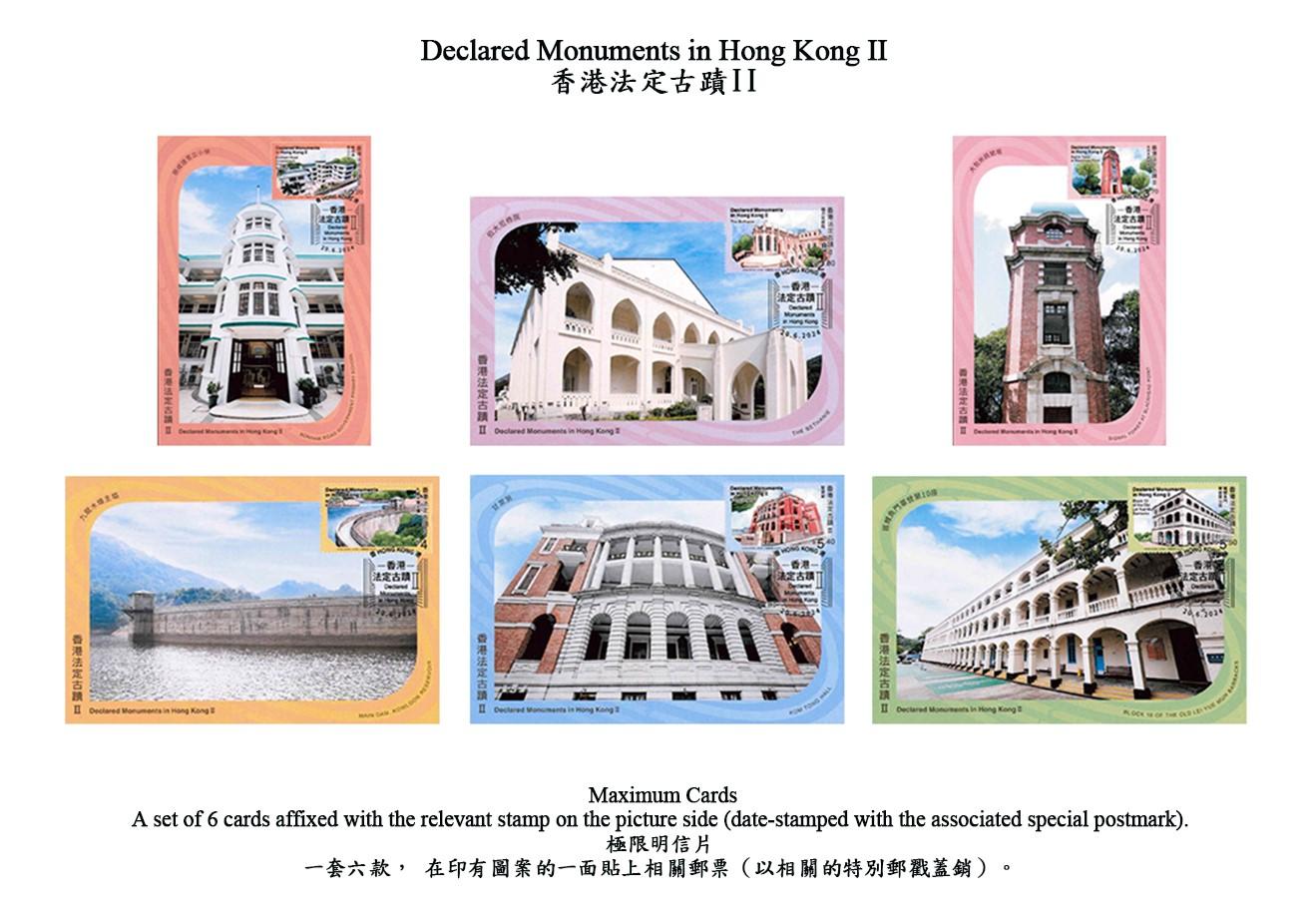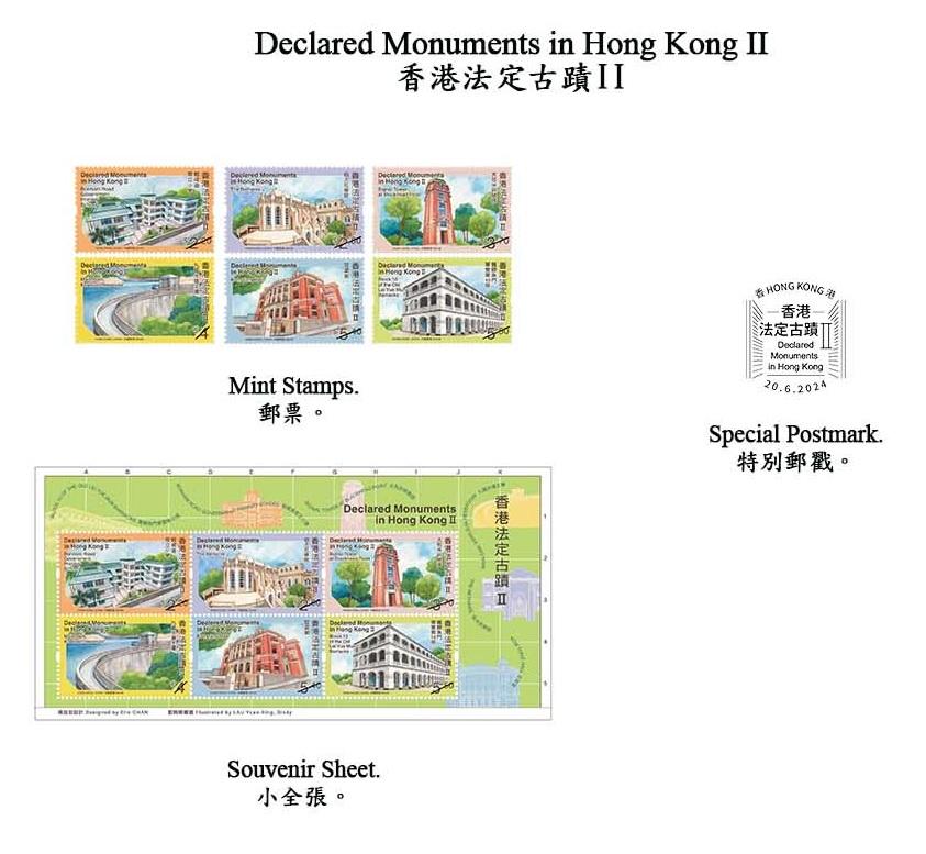 為了讓市民認識及欣賞香港的歷史建築,繼2007年發行「香港法定古蹟」特別郵票后,香港郵政以「香港法定古蹟II」為題發行一套6枚郵票及相關集郵品,以細緻的水彩風格,營造出一種古蹟歷經時間洗禮,而更顯珍貴的歷史美感。