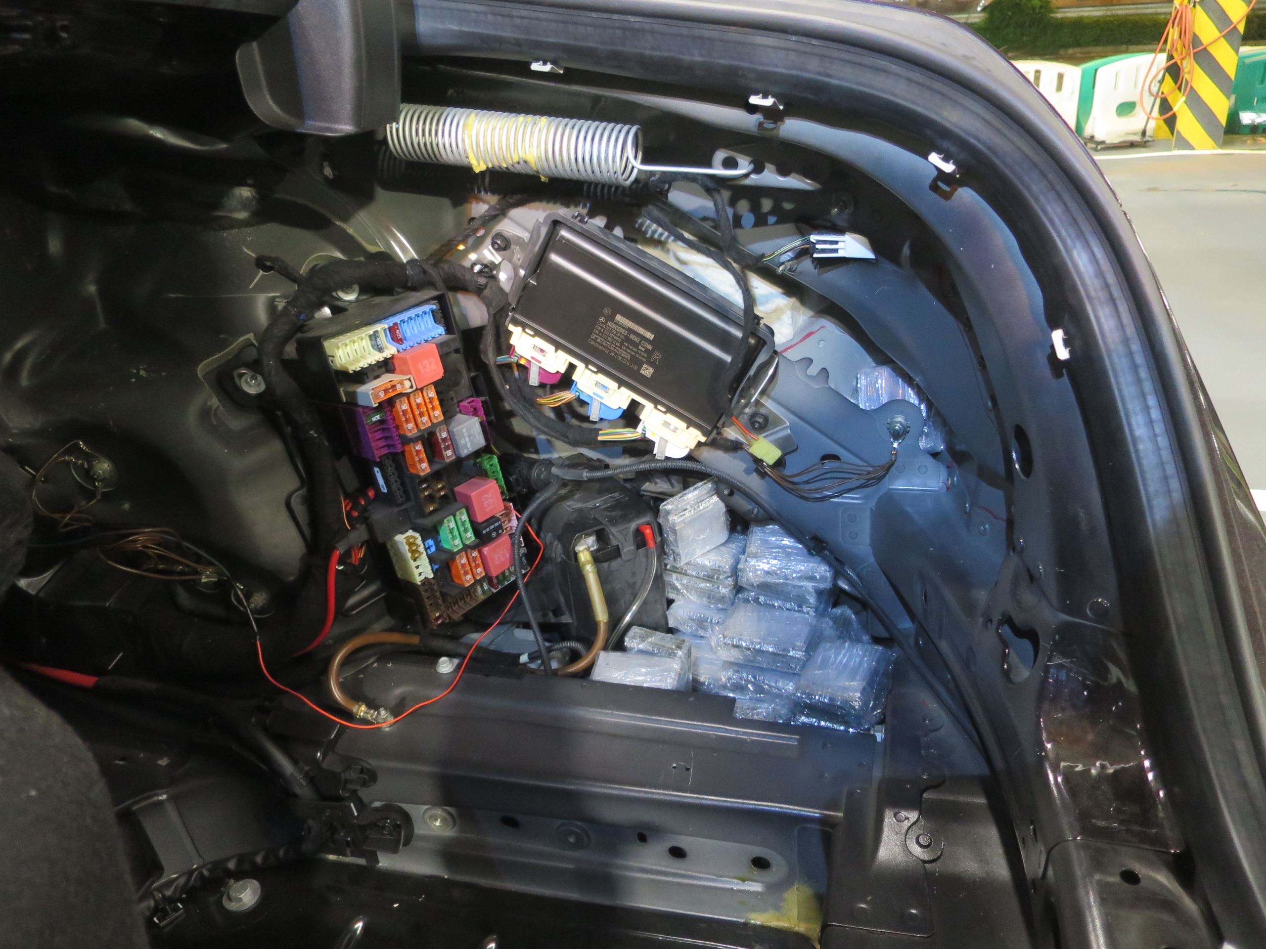 海關當日根據風險評估,在深圳灣管制站截查一輛出境私家車。經X光檢驗後,海關人員發現車尾箱的影像有異,並在車尾兩邊和車尾箱的暗格內發現該批懷疑走私貨物。
