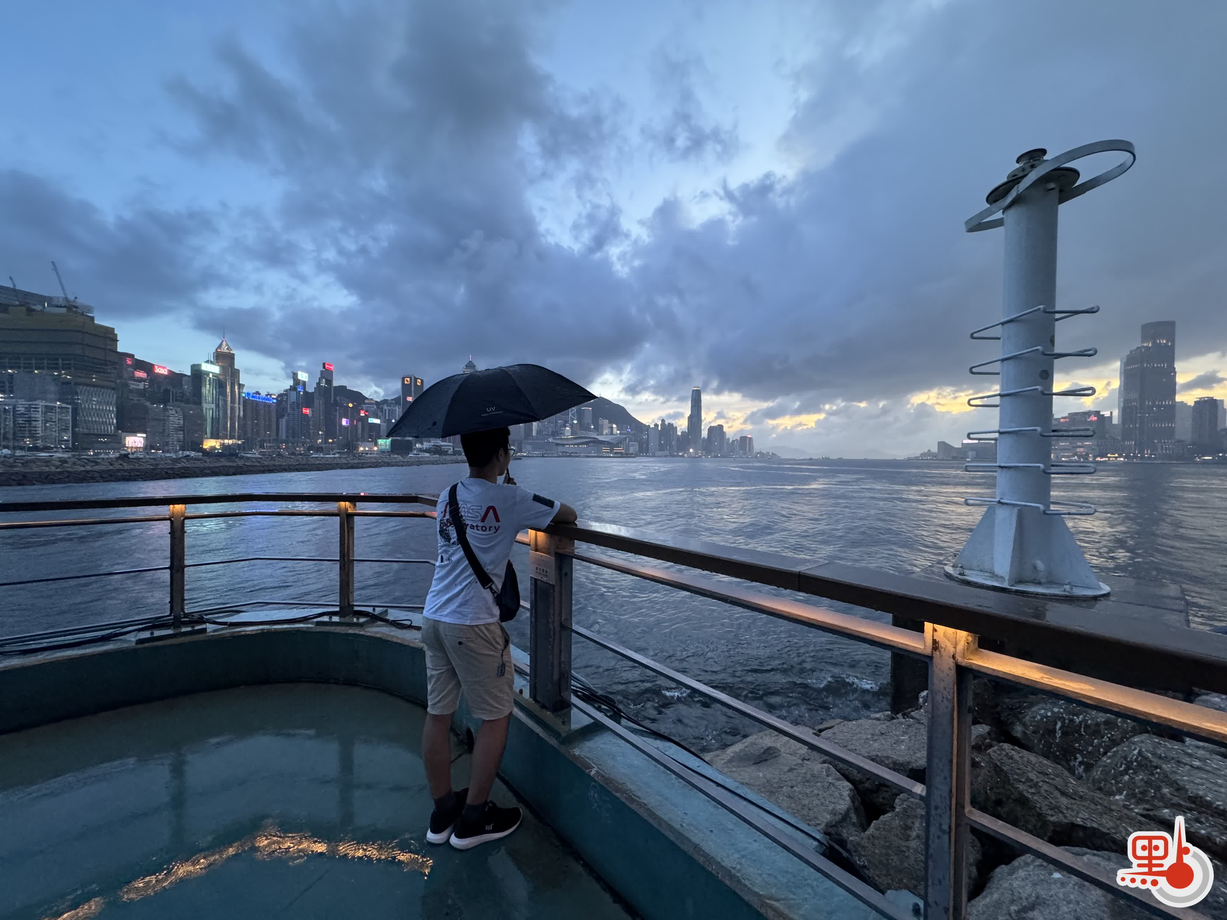 【點新聞報道】本港近日大致晴朗,不過天氣變化莫測,驟雨時有出現。不少市民今日(23日)前往東岸公園欣賞日落時分的維港景色。然而天氣突變,驟雨襲來,有市民匆匆從岸邊折返慌忙避雨,也有市民留在原地繼續欣賞落日美景,享受難得的涼爽。
