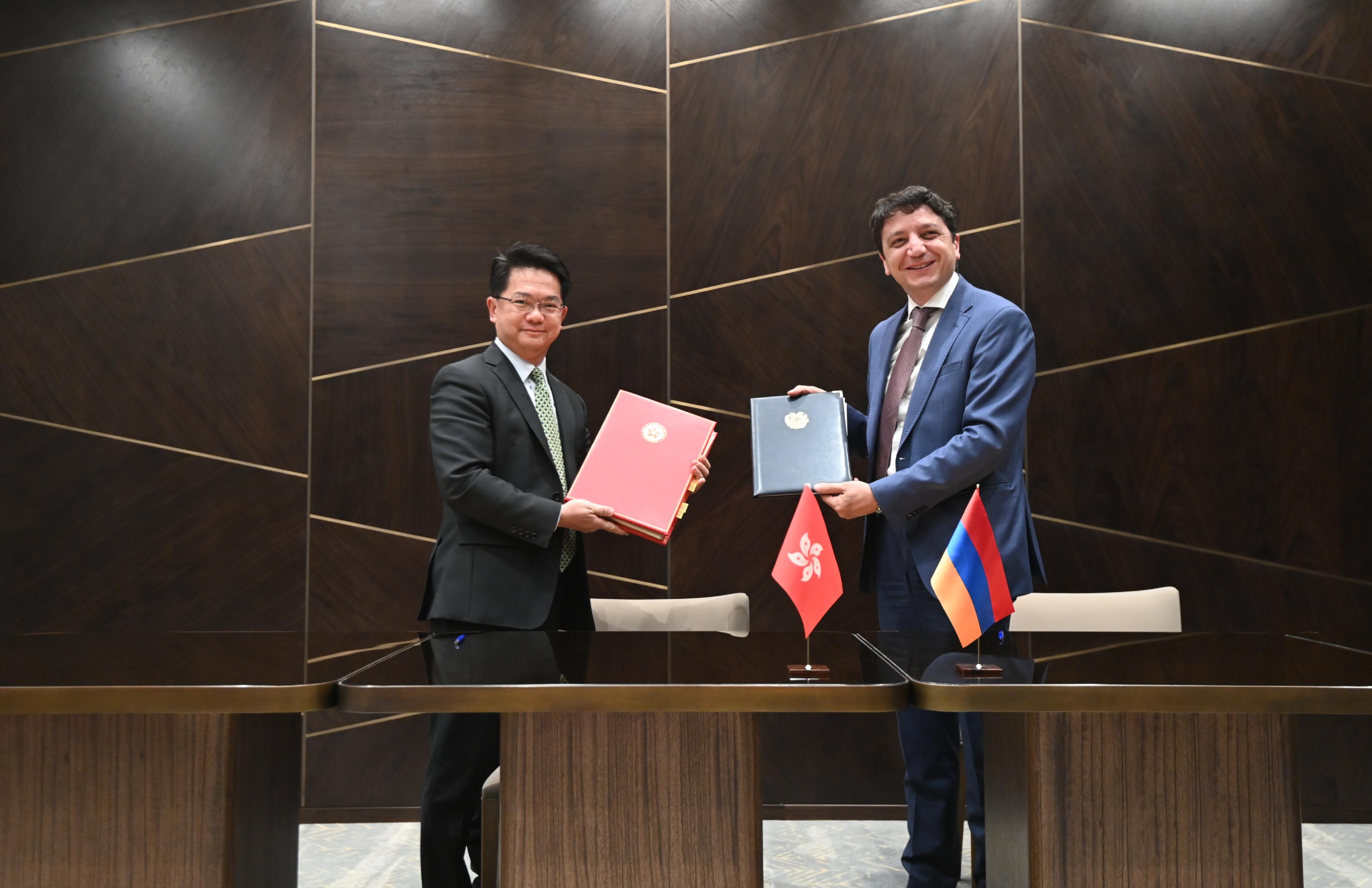 【點新聞報道】香港今日與亞美尼亞在埃里溫簽署全面性避免雙重課稅協定(全面性協定),標誌着特區政府在拓展香港的全面性協定網絡方面,特別是和參與「一帶一路」倡議的稅務管轄區簽署全面性協定的有關工作,繼續取得成果。