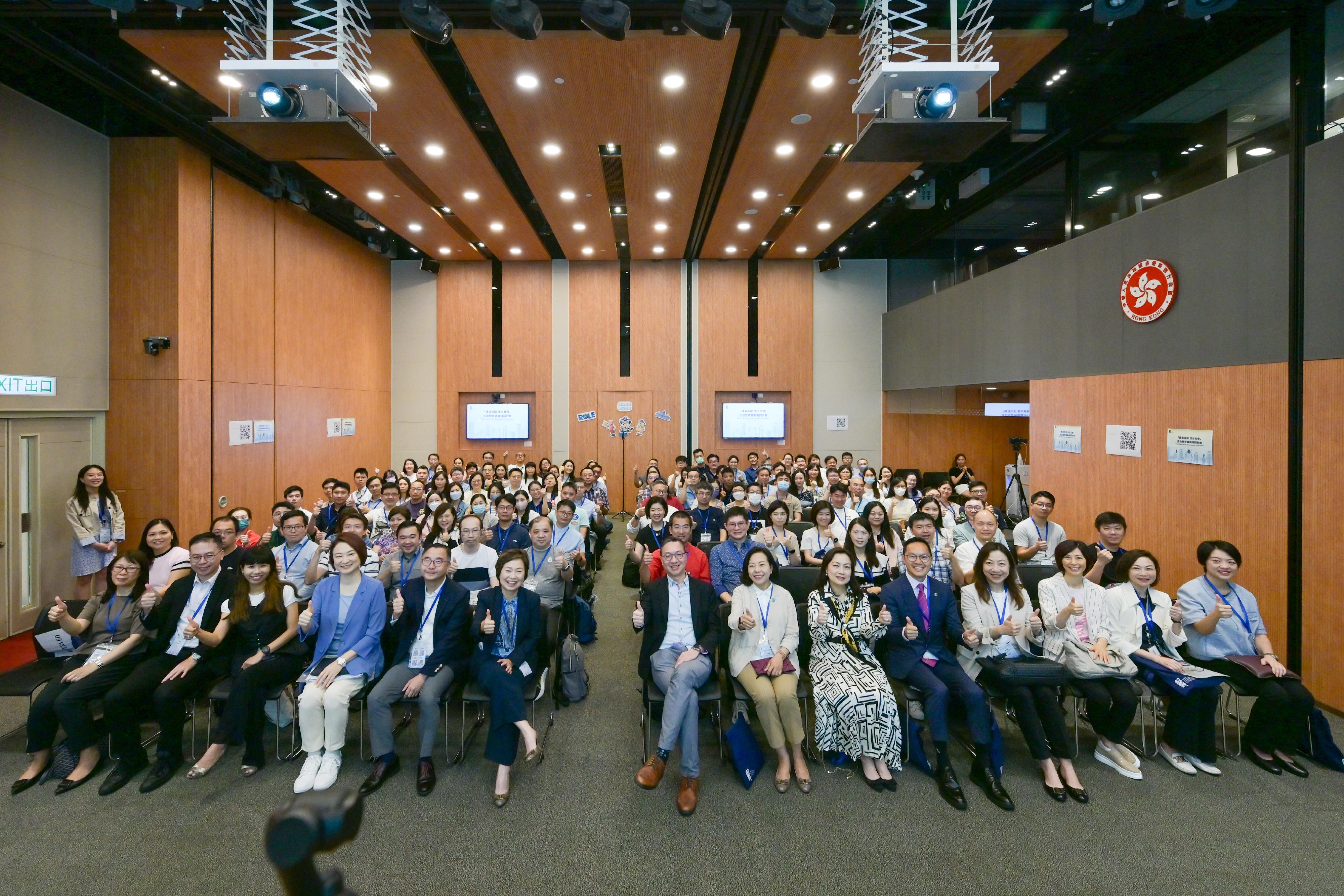 【點新聞報道】律政司今日(6日)正式開展第二階段的「傳承共建 法治社會」法治教育領袖培訓計劃,以多元互動、有趣「貼地」、淺白易明的方式,向約120名任職本地中學教師的學員講授法治知識。律政司司長林定國和教育局局長蔡若蓮為活動開課致辭,民政及青年事務局局長麥美娟亦有出席。