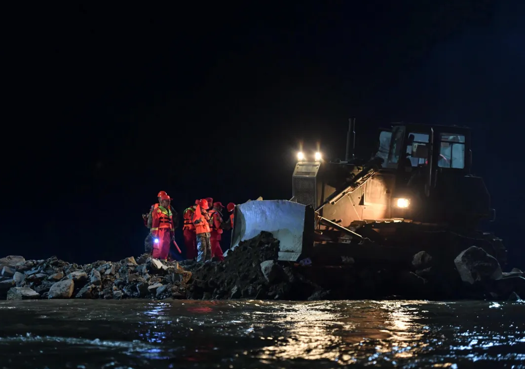 【點新聞報道】據新華社報道,7月8日22時31分,新華社記者在湖南華容縣團洲垸洞庭湖大堤決口封堵現場看到,團洲垸洞庭湖大堤決口完成封堵。