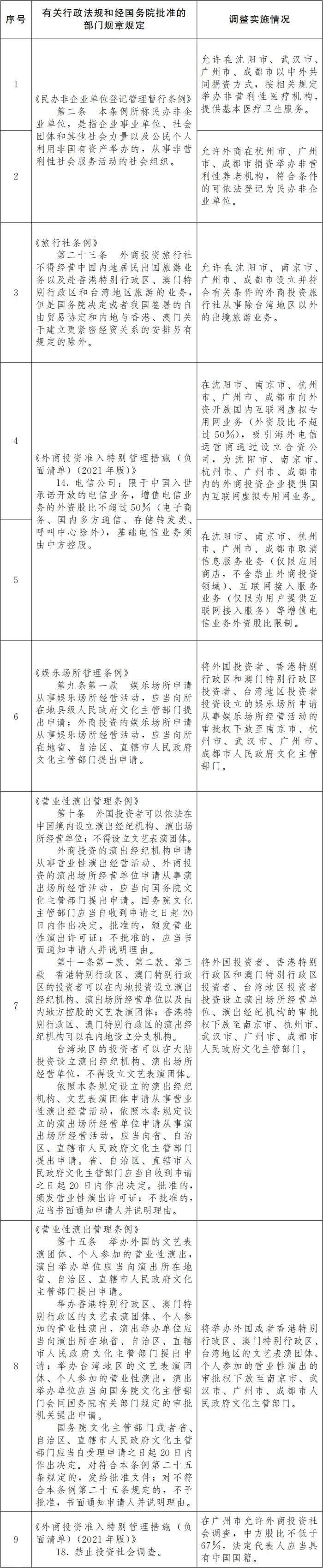 《批覆》明確,國務院有關部門、相關省市人民政府要根據上述調整,抓緊對本部門、本省市制定的規章和規範性文件作相應調整,統籌發展和安全,建立與服務業擴大開放綜合試點任務相適應的管理制度。