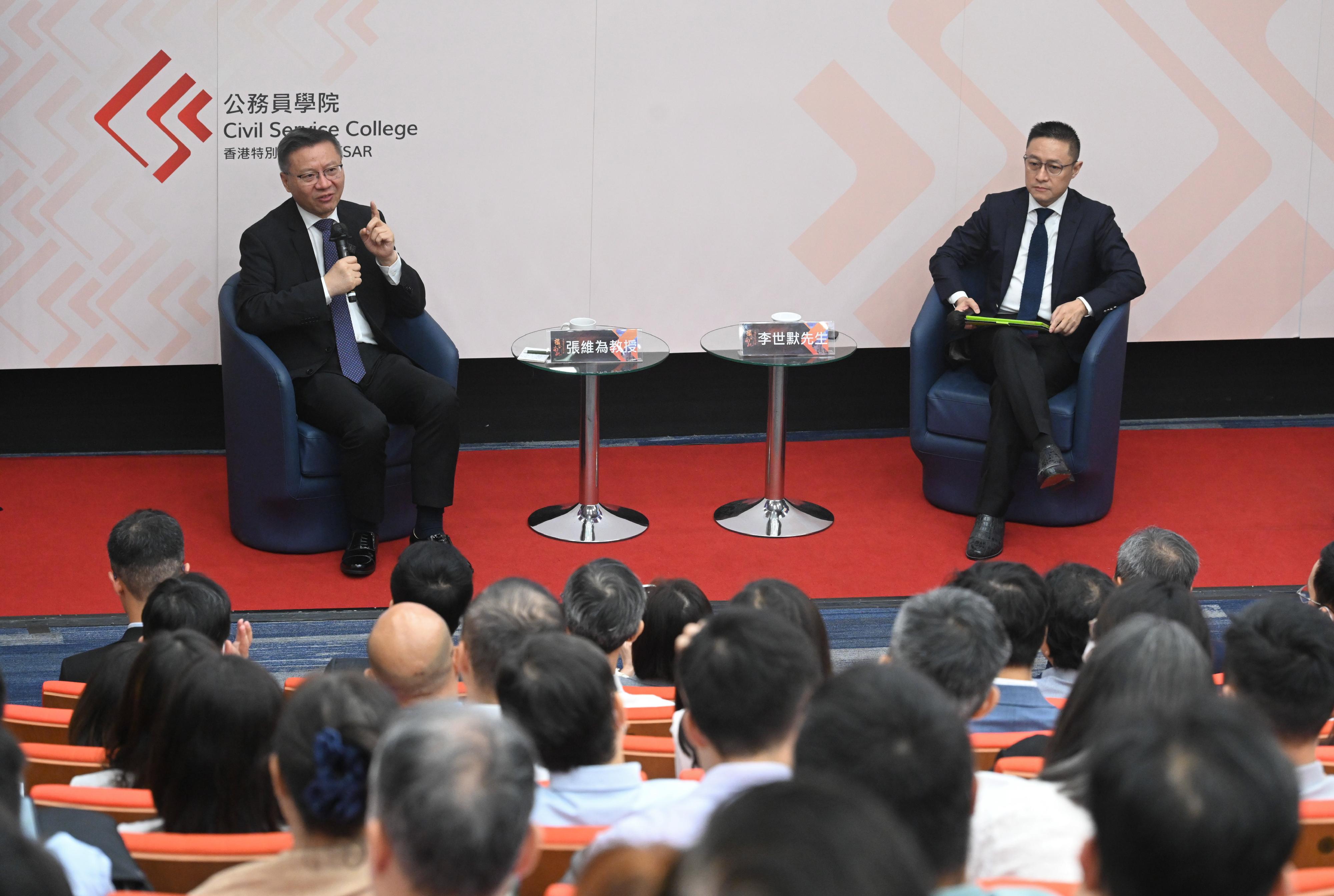 【點新聞報道】公務員學院舉辦「撮合南北:多極世界中的中國系列」講座,今日(15日)在公務員學院舉行首場以「中國道路的百年探索及世界意義」為題的講座,由復旦大學中國研究院院長張維為教授主講,復旦大學中國研究院諮詢委員會主任李世默擔任主持。