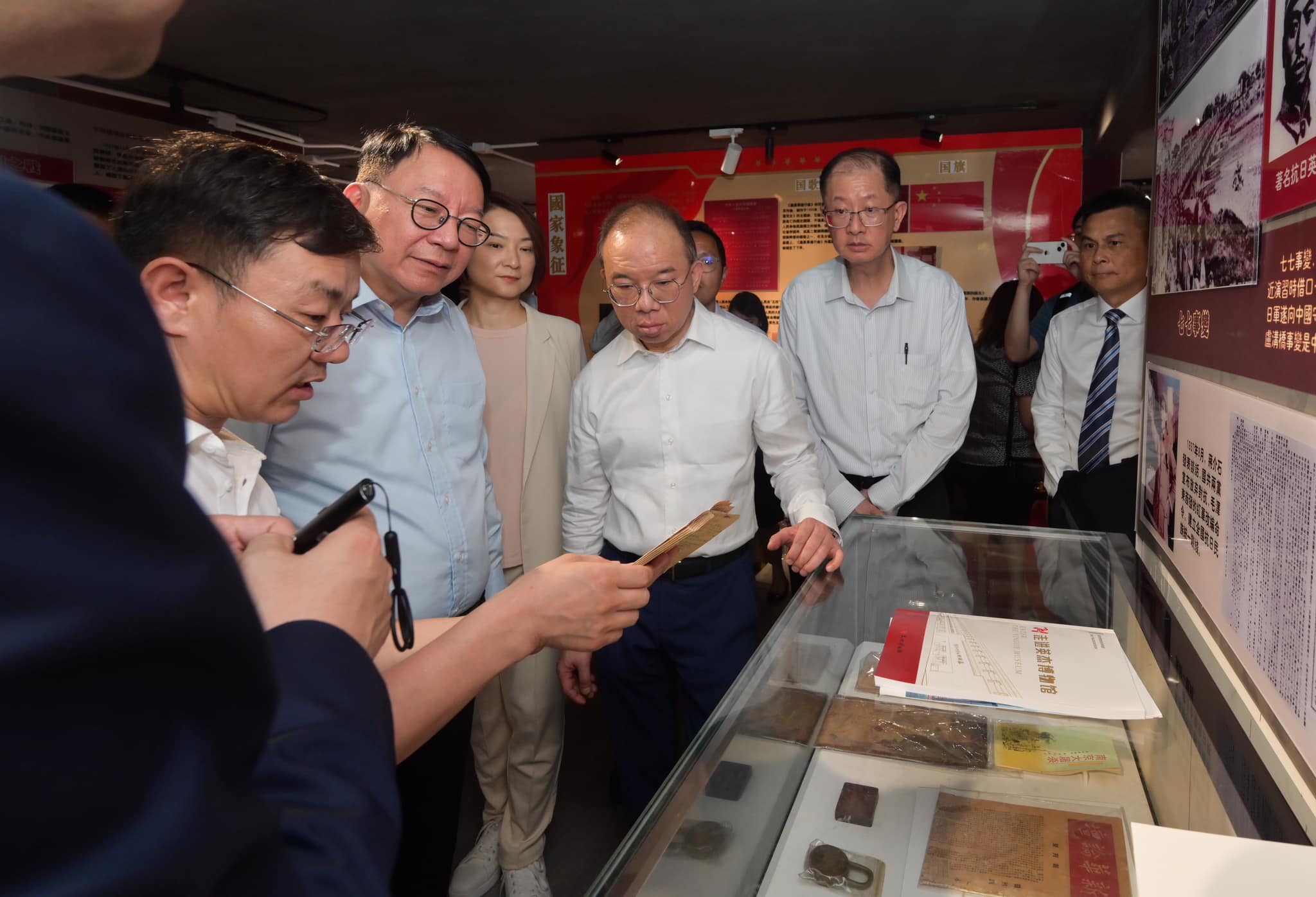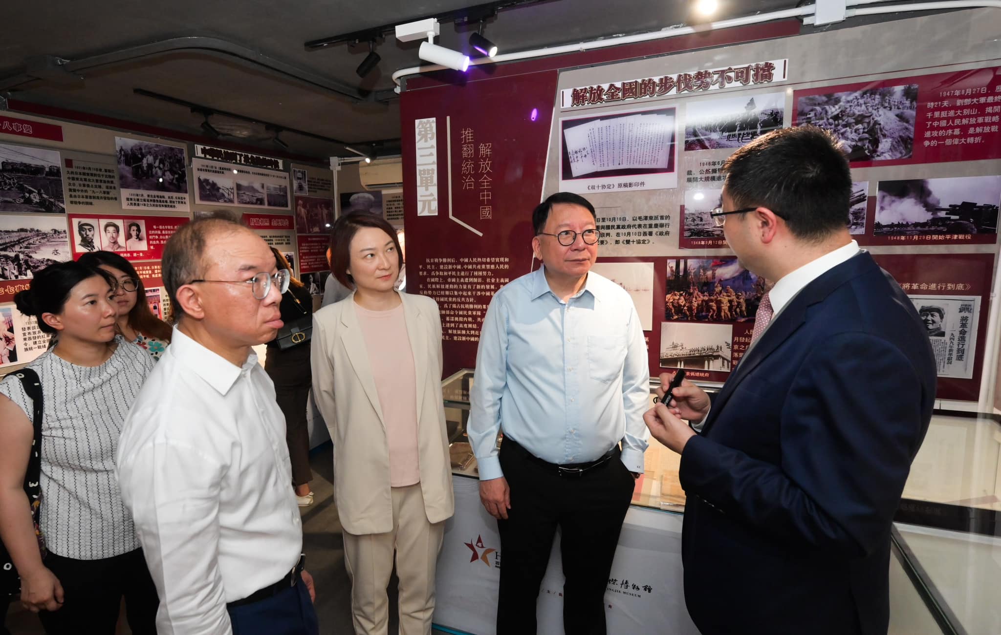 其後,眾人一同參觀位於新田永平村的香港愛國主義教育展廳。這是香港首個民間愛國主義教育展廳,透過200餘件珍貴歷史文獻資料、照片和實物等展品,展示香港百年來的愛國實踐。