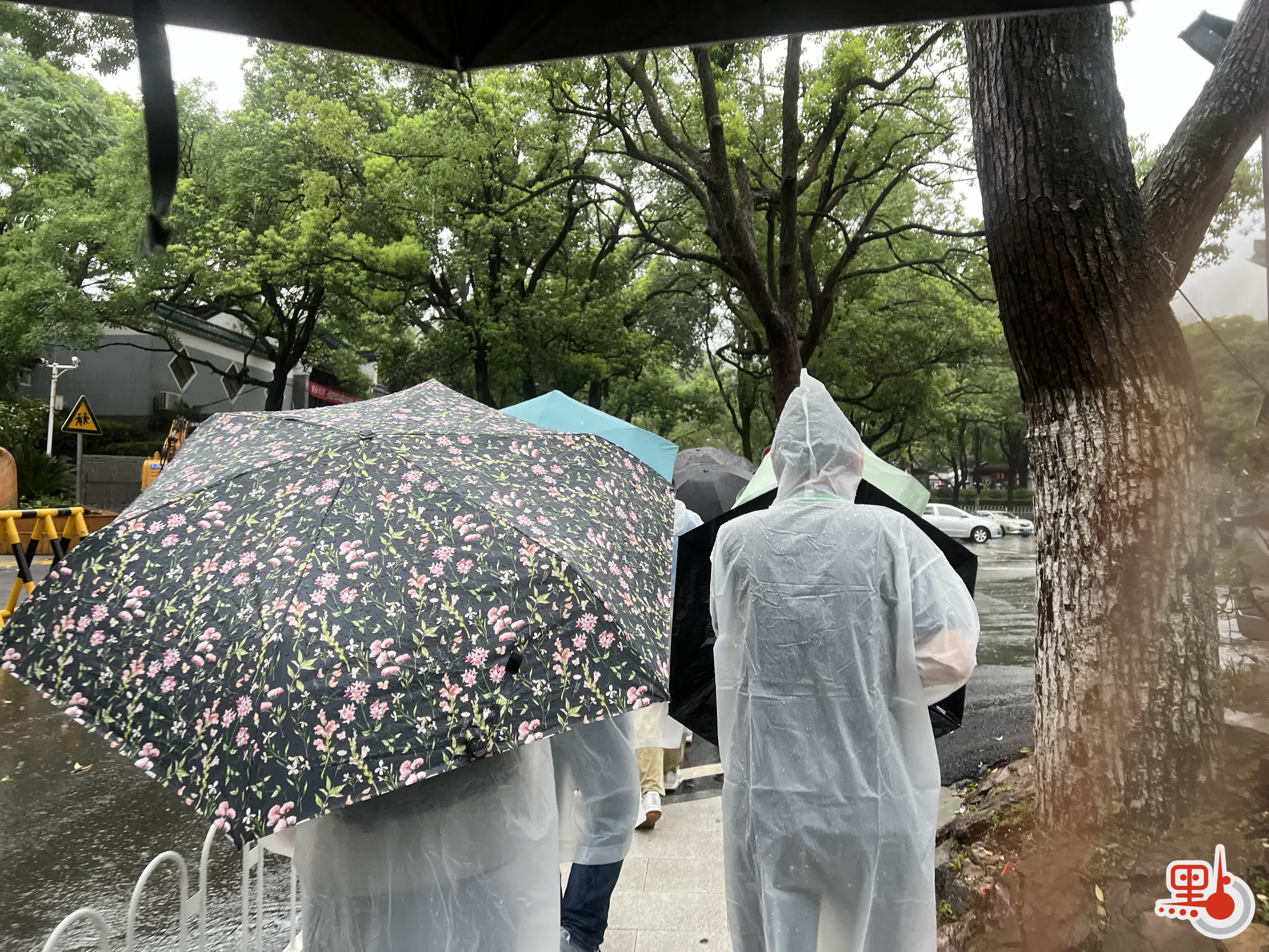 點新聞記者今日上午在長沙嶽麓書院見到,暴雨傾盆而下,雨勢頗大。許多遊客仍在書院內參觀,儘管有撐傘兼身着雨褸,都抵擋不住狂風暴雨的威力,不少人擠在屋簷下避雨,頗為狼狽。