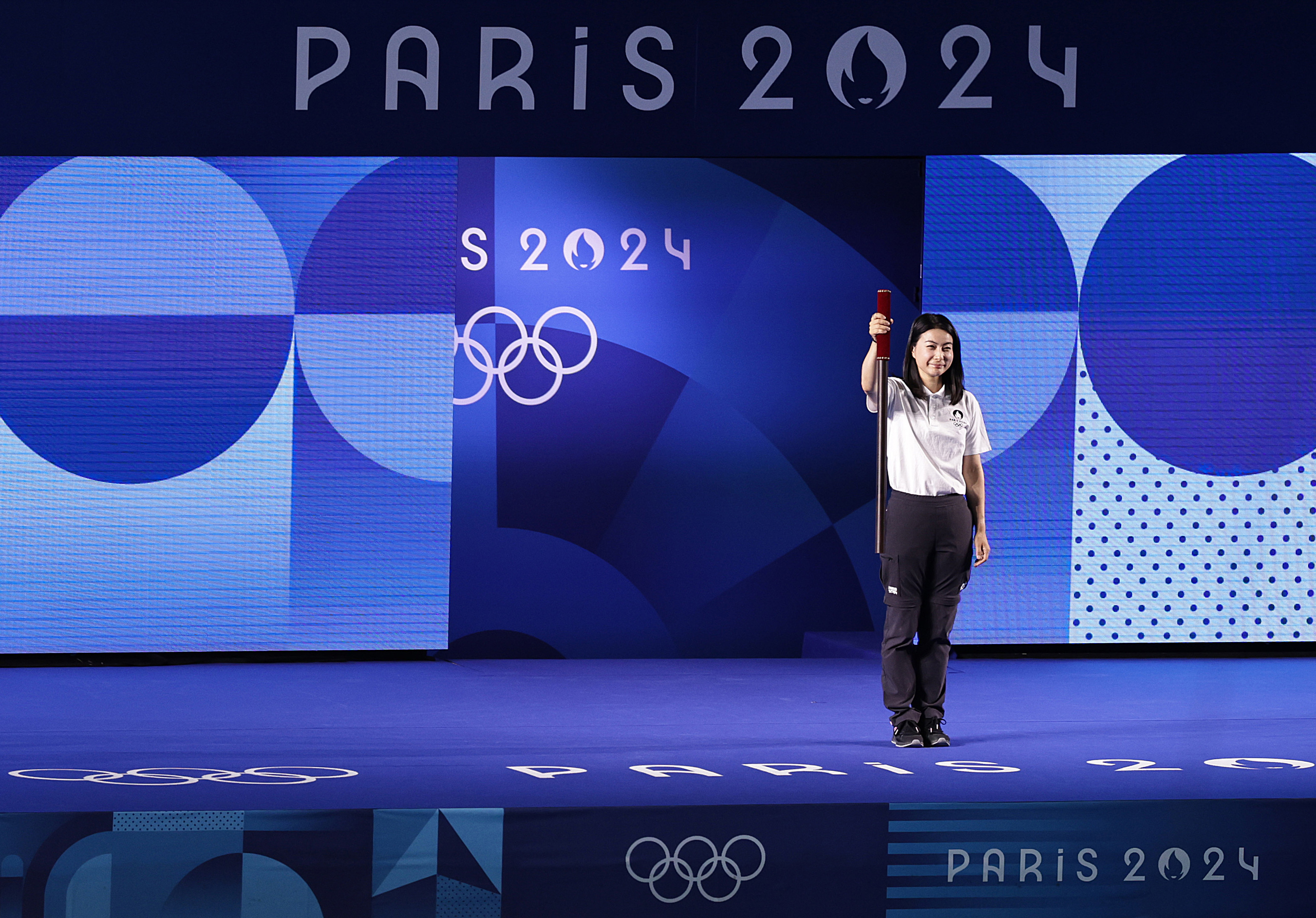本屆奧運這段傳統儀式延伸到賽場上,並邀請前任或現役運動員、名人甚至是素人志願者,來執行這項開賽儀式。在7月30日進行的奧運會乒乓球混雙決賽,「莎頭」組合——王楚欽/孫穎莎拿下中國代表團第六金。在決賽前,中國乒乓球傳奇鄧亞萍率先登場,以上述方式開賽。