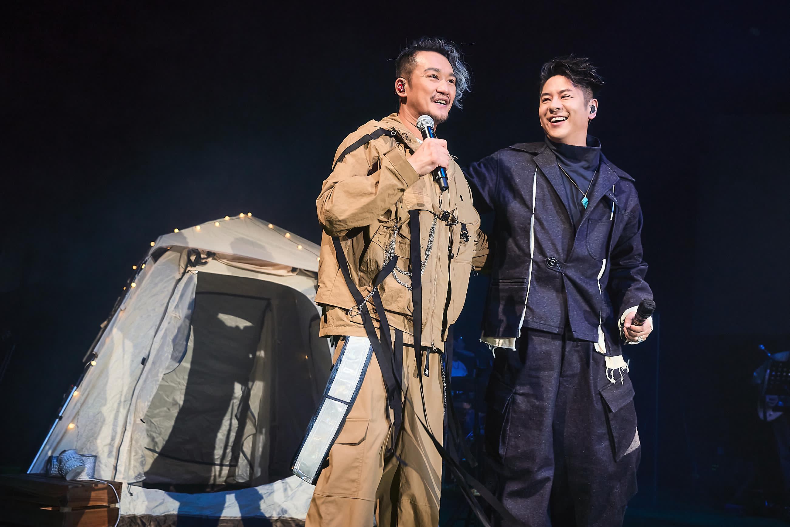 【點新聞報道】「吳浩康《男歌》演唱會」昨晚(10日)於新蒲崗東蒲體育館圓滿完成,大會在舞台布置上花了不少心思,特別在舞台上安放了單車、帳幕及燒烤爐,讓大家如置身於野外露營活動中。吳浩康(Deep)更找來Alfred許廷鏗做演唱會嘉賓,更和全場觀眾一起合唱Alfred的「青春頌」,因他覺得這首歌真的影響了很多人。