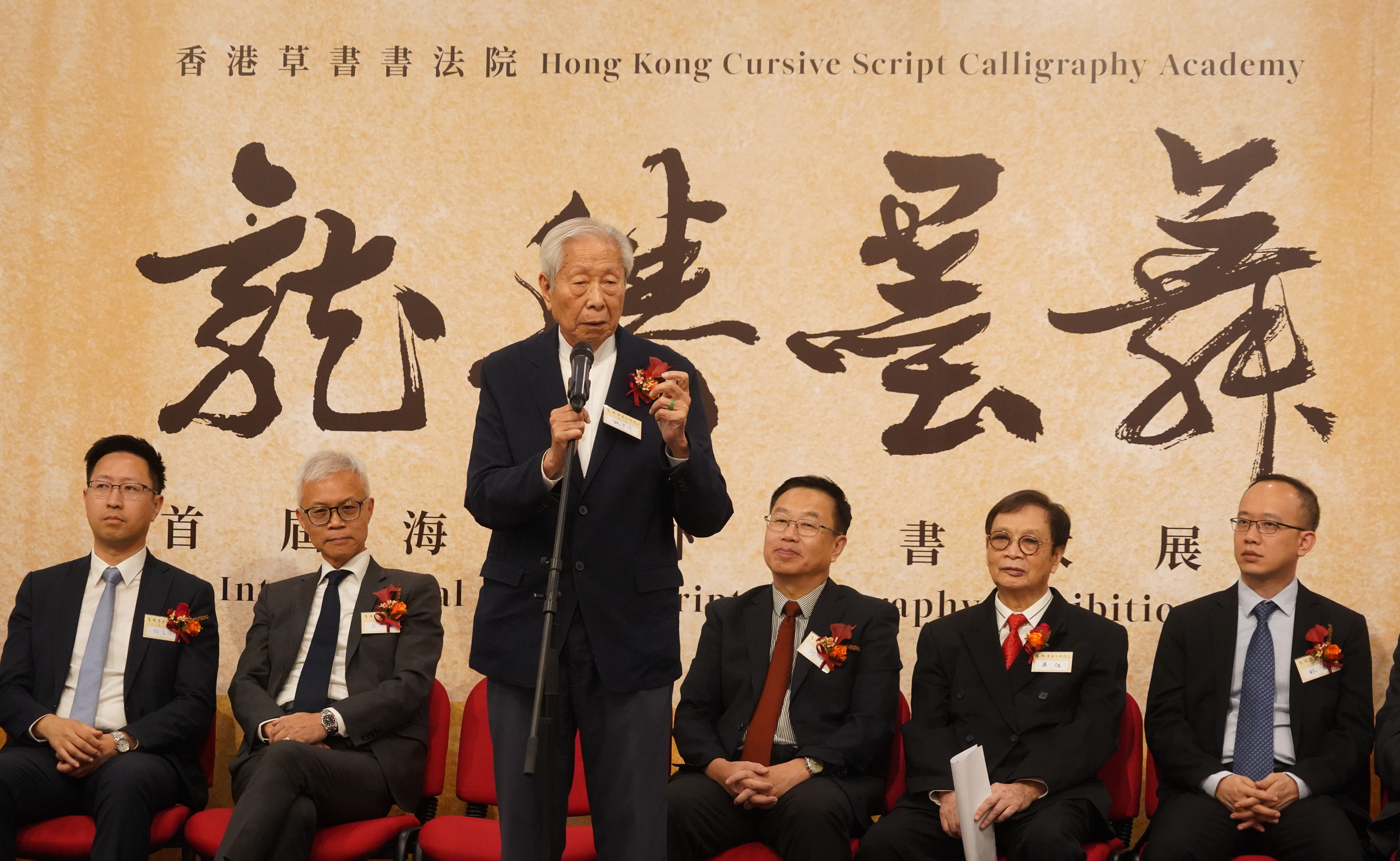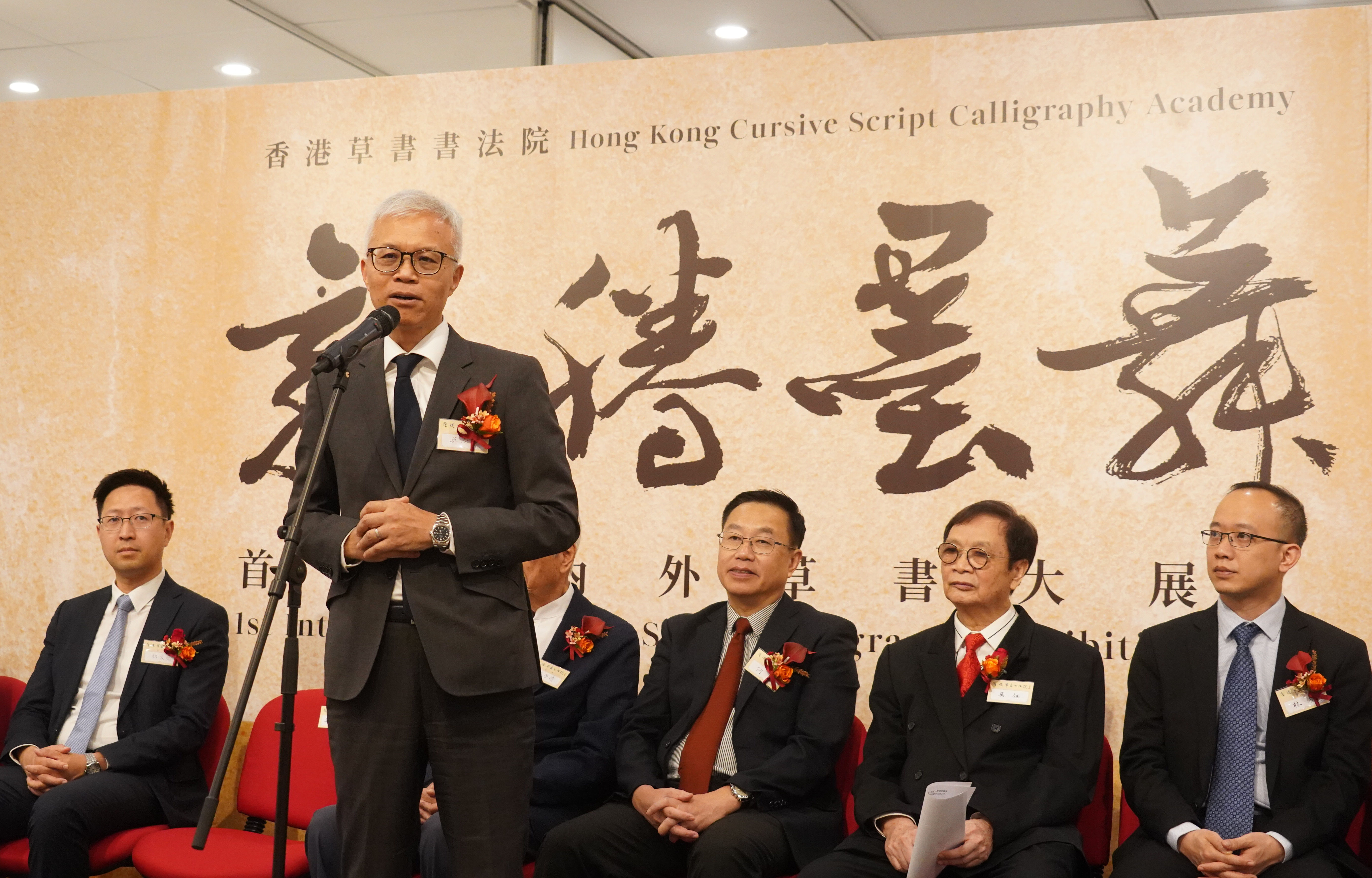 吳志華在致詞中表示:「今次展覽可謂香港首個最盛大的草書書法展,匯聚海內外名家佳作,希望在未來香港草書書法院可以為書法藝術的傳承與創新注入新的活力,亦促進中外書法藝術的交流合作。」
