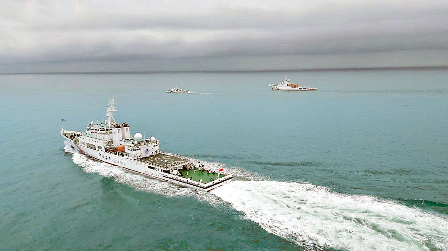 •海警2304艦艇編隊位台島以東海域開展綜合執法演練,重點開展查證識別、警告驅離等科目訓練,檢驗聯合巡航、應急處置能力。