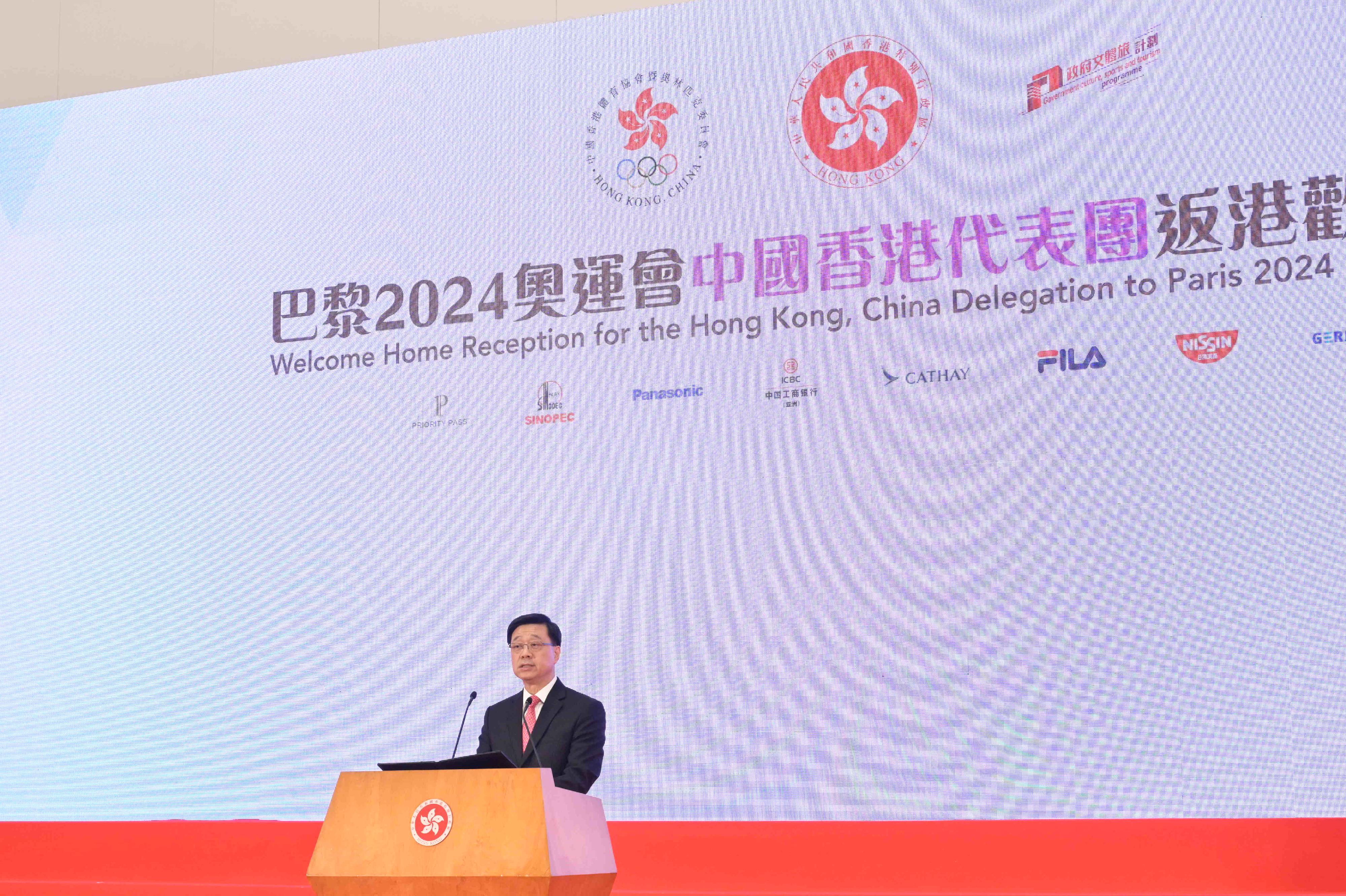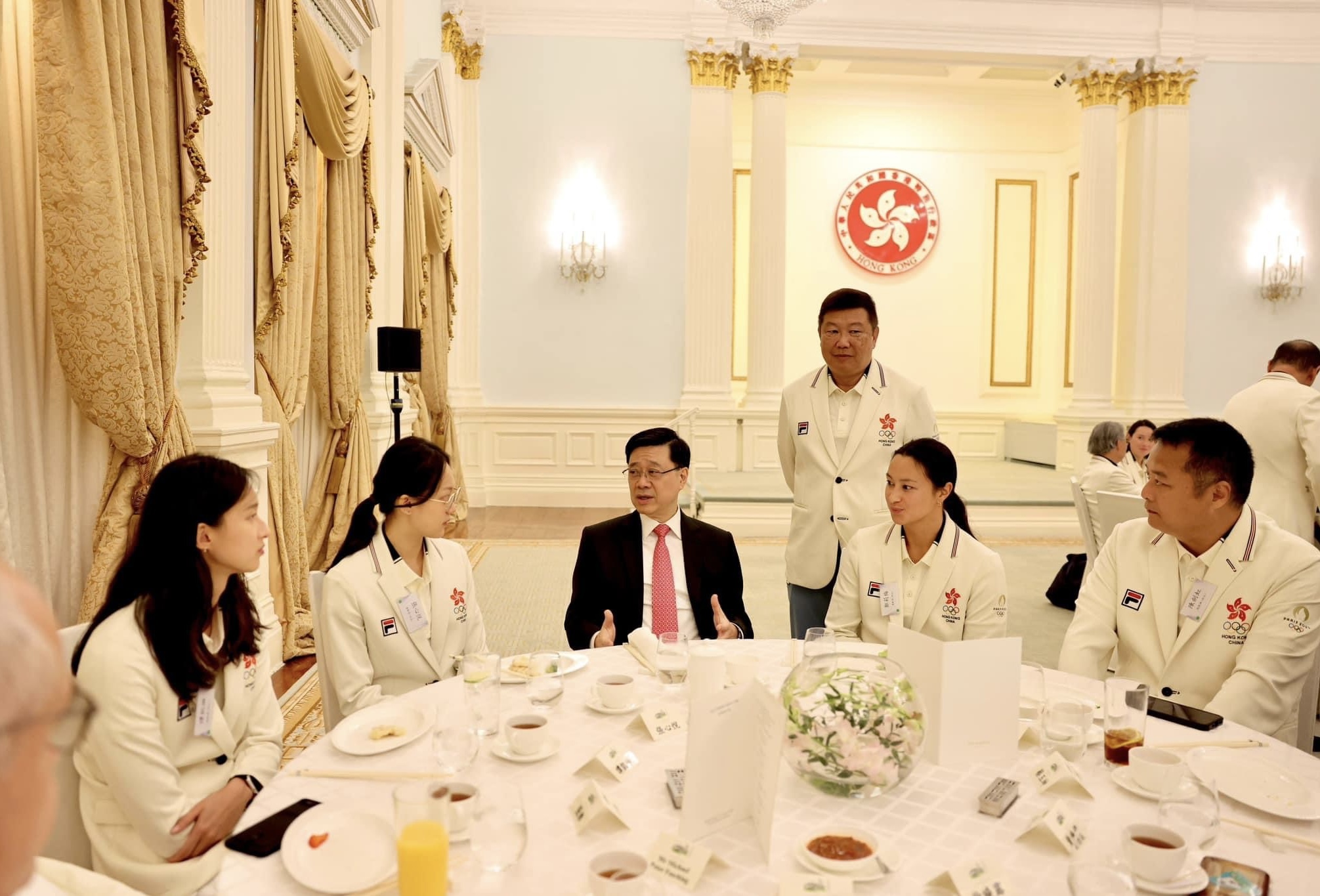 李家超表示,今屆奧運會,香港共派出35位運動員遠赴巴黎,參加13項賽事。能夠過關斬將,取得奧運參賽資格,已經代表每一位都是世界前列的運動員。今屆巴黎奧運會,港隊除了在劍擊和游泳項目中分別取得兩金、兩銅共四面獎牌外,亦在其他多項賽事中表現出色。驕人成績除了證明香港運動員擁有國際實力和頑強鬥志外,亦證明香港運動員都有在國際體壇爭一席位的能力。