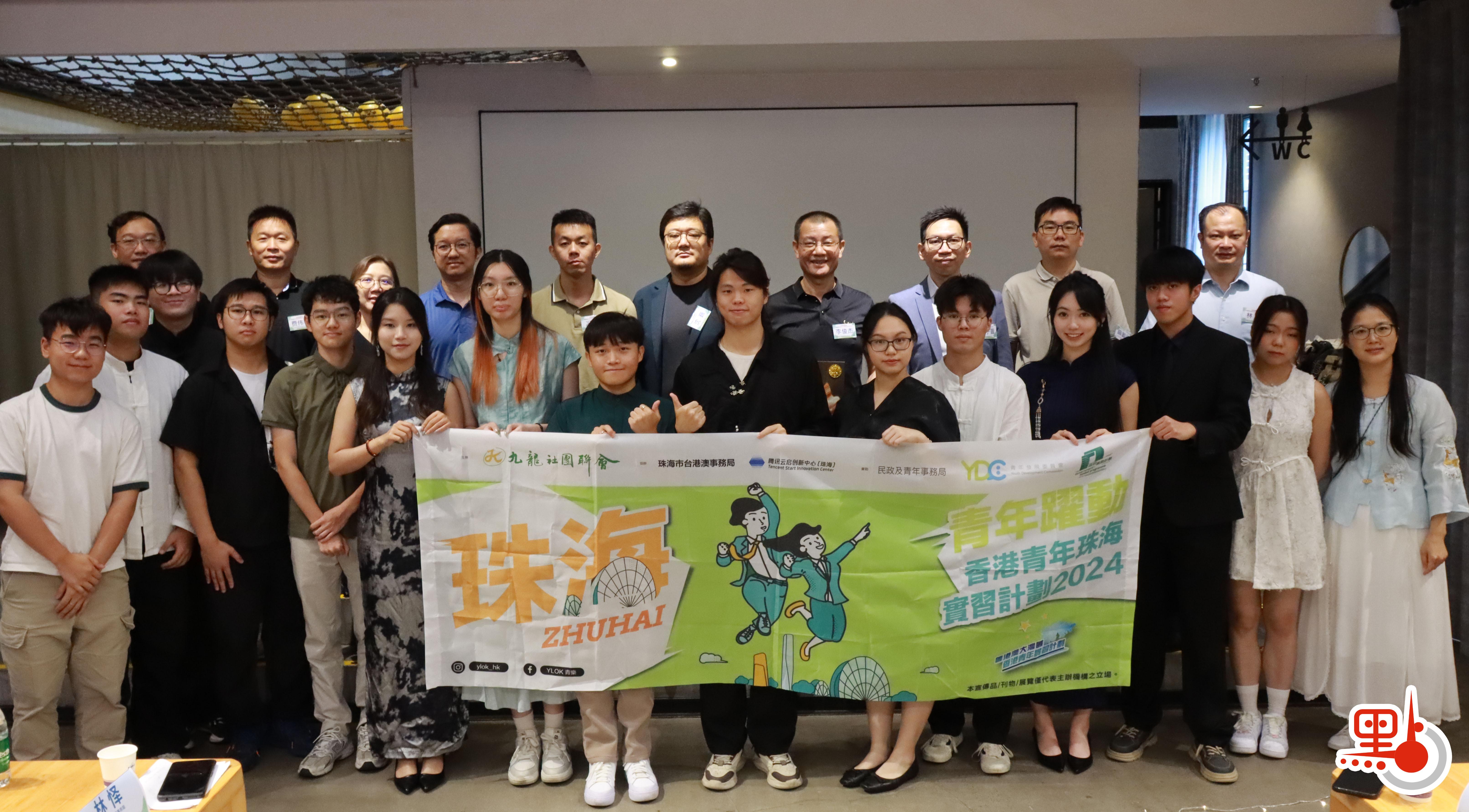 在「青年躍動·香港青年大灣區實習計劃2024」成果分享會上,珠海市台港澳辦事務局、香港九龍社團聯會、騰訊雲啟創新中心(珠海)、實習企業等有關負責人和香港青年實習生們參加。期間,港青實習生們通過演講分享、節目表演等多種形式,回顧了在珠海的實習經歷,講述在內地的生活體驗。