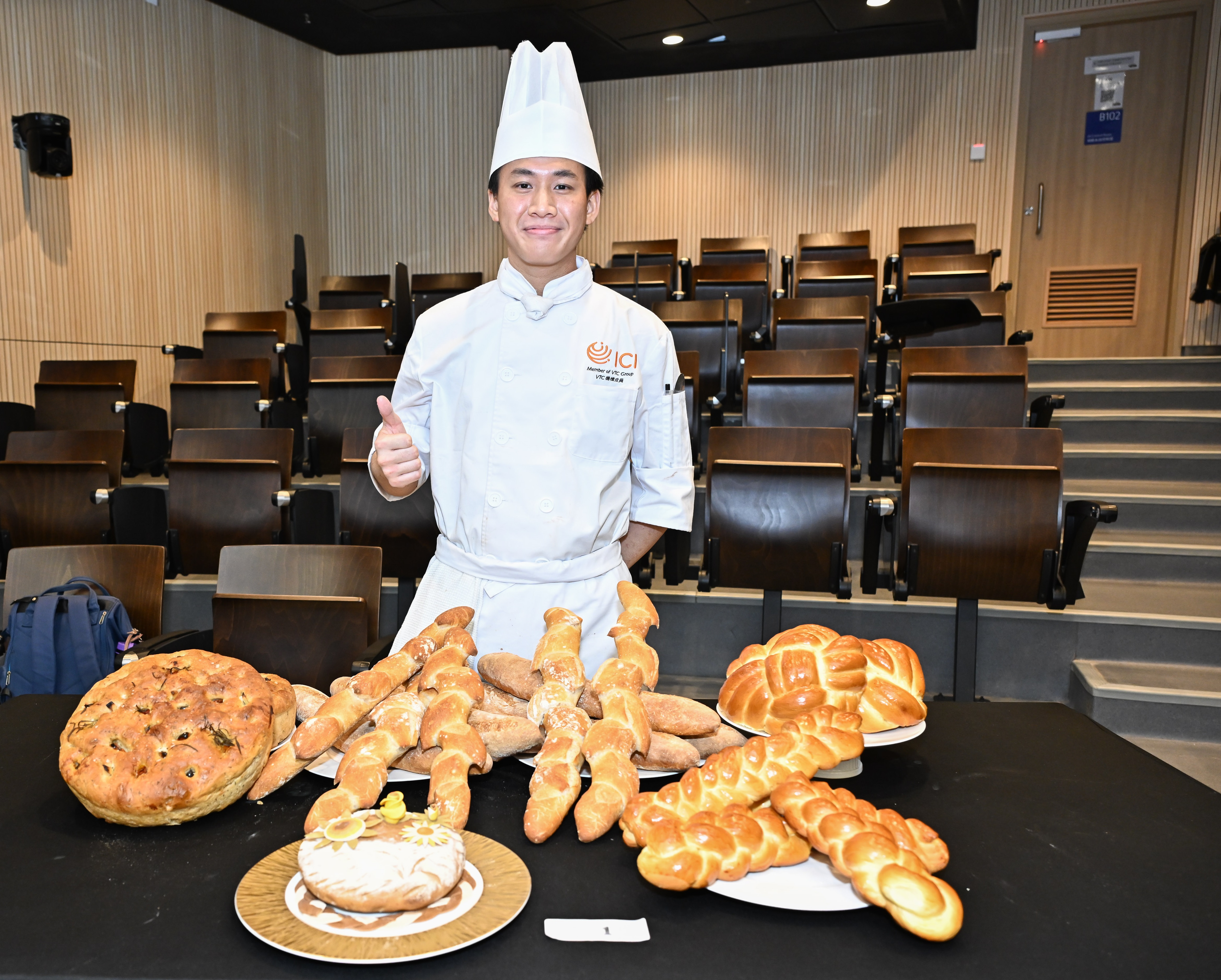 於今屆世界賽事中,有四個項目是香港隊首次派出選手參加,包括「烘焙」「酒店款待」「飛機維修」和「軌道車輛技術」。其中,「烘焙」項目選手郭承璁(Jeff)是國際廚藝學院(ICI)西式包餅及糖藝文憑課程畢業生,Jeff表示很榮幸成為首位香港選手參加此項目,沒有前人的參賽經驗反而令他感到有更大的創作和發揮空間,他亦期待將法國的比賽得着帶回港向師弟妹分享。喜歡烘焙的Jeff分享,由於爸爸是一名廚藝了得的廚師,從小受薰陶,愛看烹調影片,尤其鍾情自製麵包。他表示,善用不同的酵母品種和發酵時間可製出不同風味的麵包,過程和成品變化多端且可塑性高,令他大感興趣。各式麵包所需的專業技術各有不同,Jeff現正密集式訓練製作不同麵包的手藝,以經典法式長棍包為例,製作時要盡量保留麵糰內的空氣,使麵包發酵後更外脆內軟兼氣孔均勻分布;至於健康界「新星」酸種麵包對技術的要求相當高,Jeff指出由於這款麵包無添加僅用麵粉、鹽和水作純天然發酵,能精準控制溫度和濕度是成功的關鍵。他表示,爸爸對他能代表香港出賽大感驕傲,他將竭盡所能取得佳績,期望將來子隨父業成為出色的廚師。