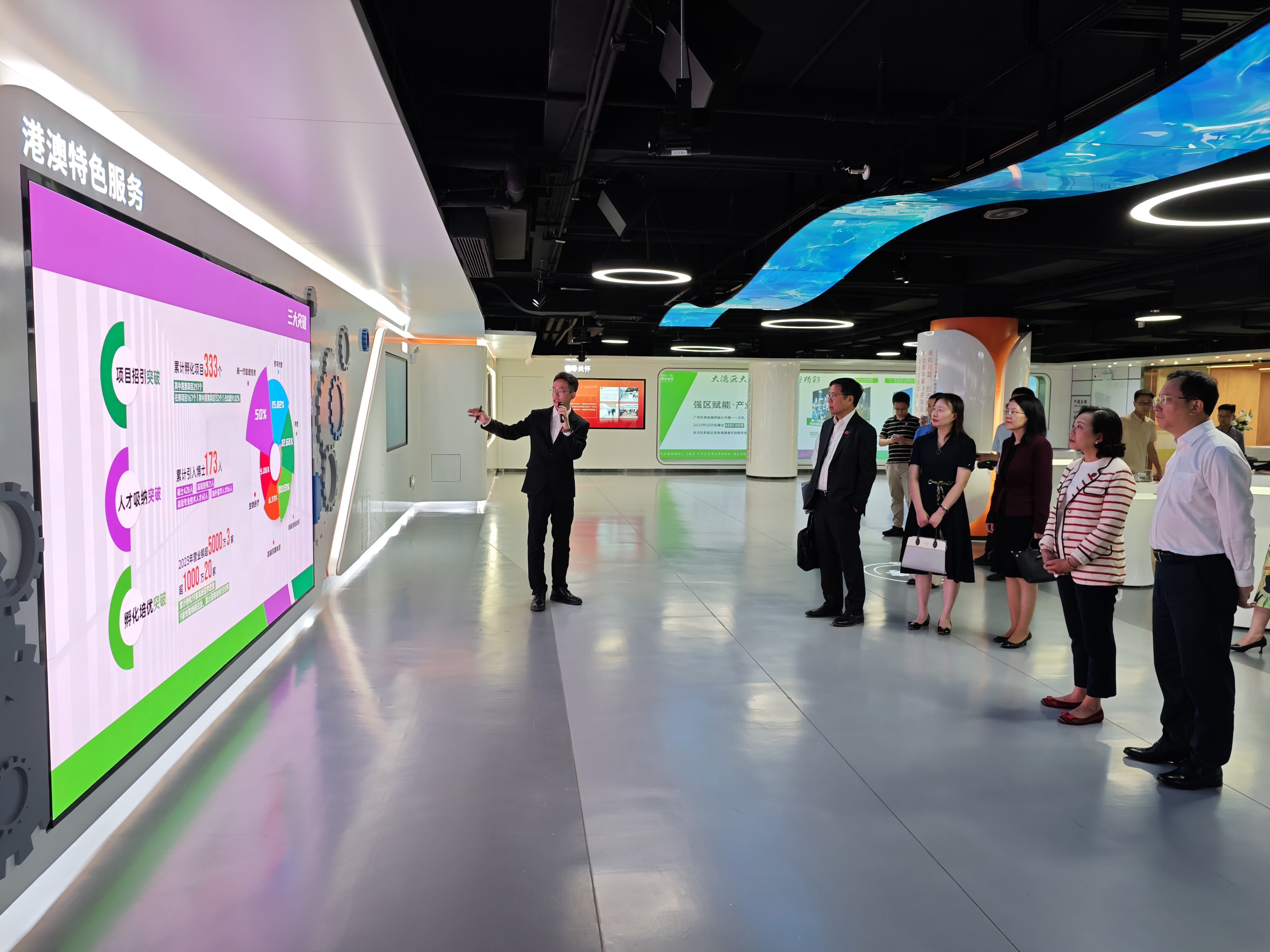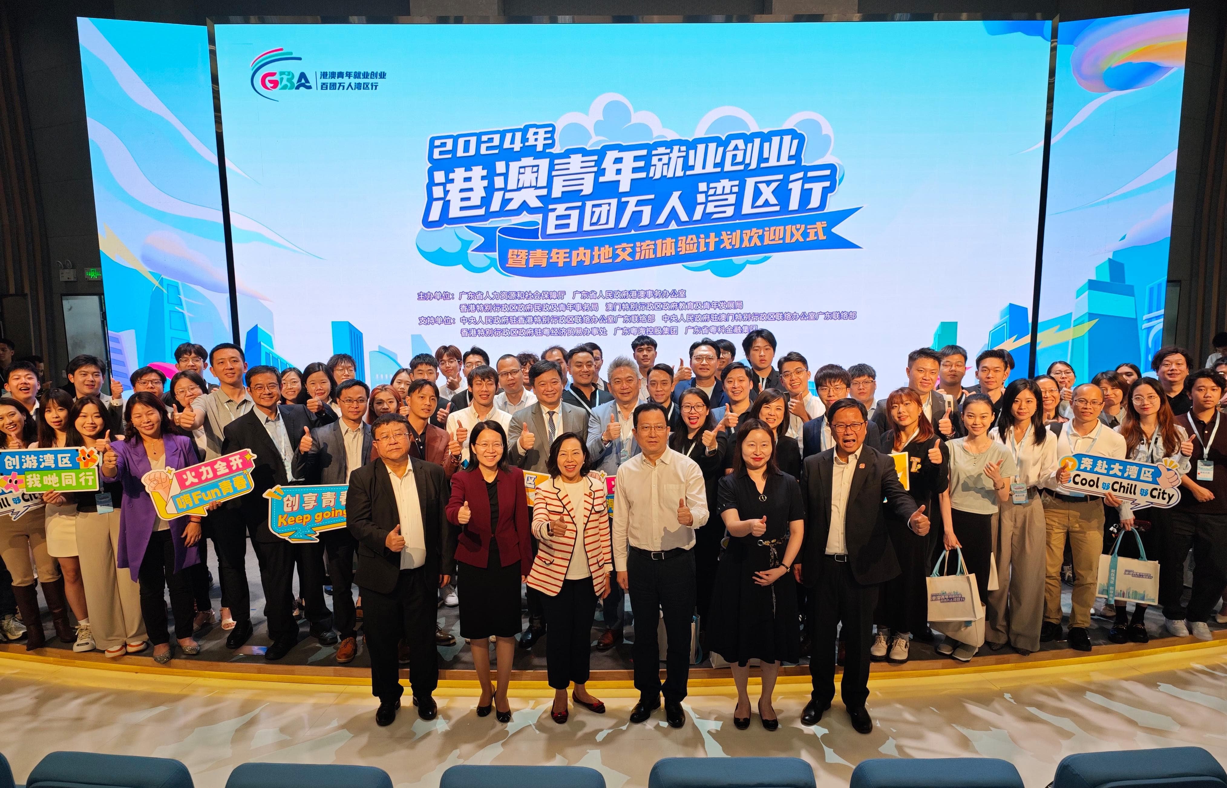 下午,麥美娟參觀粵港澳大灣區(廣東)創新創業孵化基地,並出席「2024年港澳青年就業創業百團萬人灣區行」暨「青年內地交流體驗計劃」歡迎儀式。