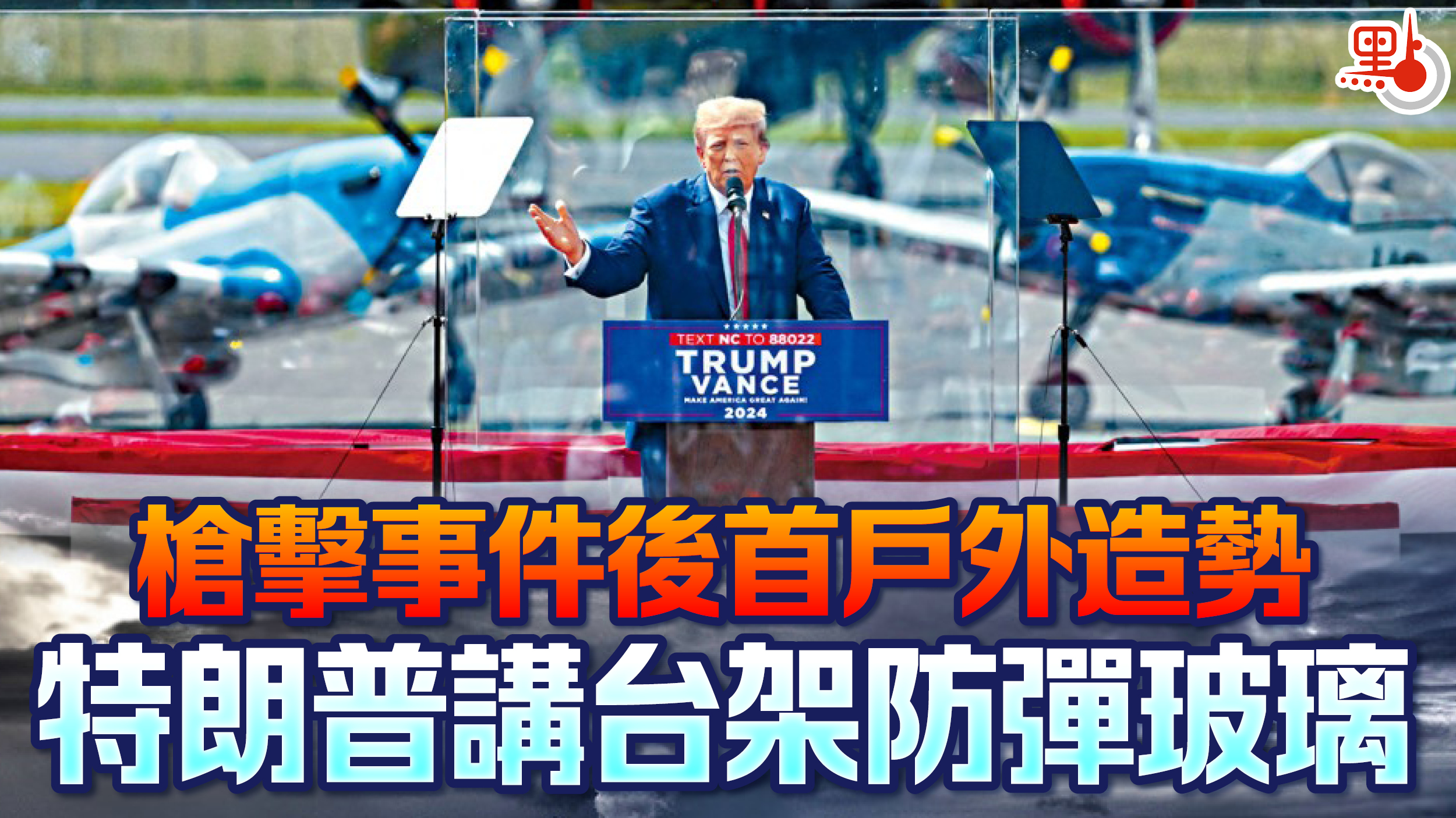 法新社等媒體報道,特朗普周三在北卡羅來納州阿什伯勒的「北卡航空博物館暨名人堂」舉行戶外造勢活動。據報道,特朗普講台上周圍有防彈玻璃環繞,形成一道「防護牆」。