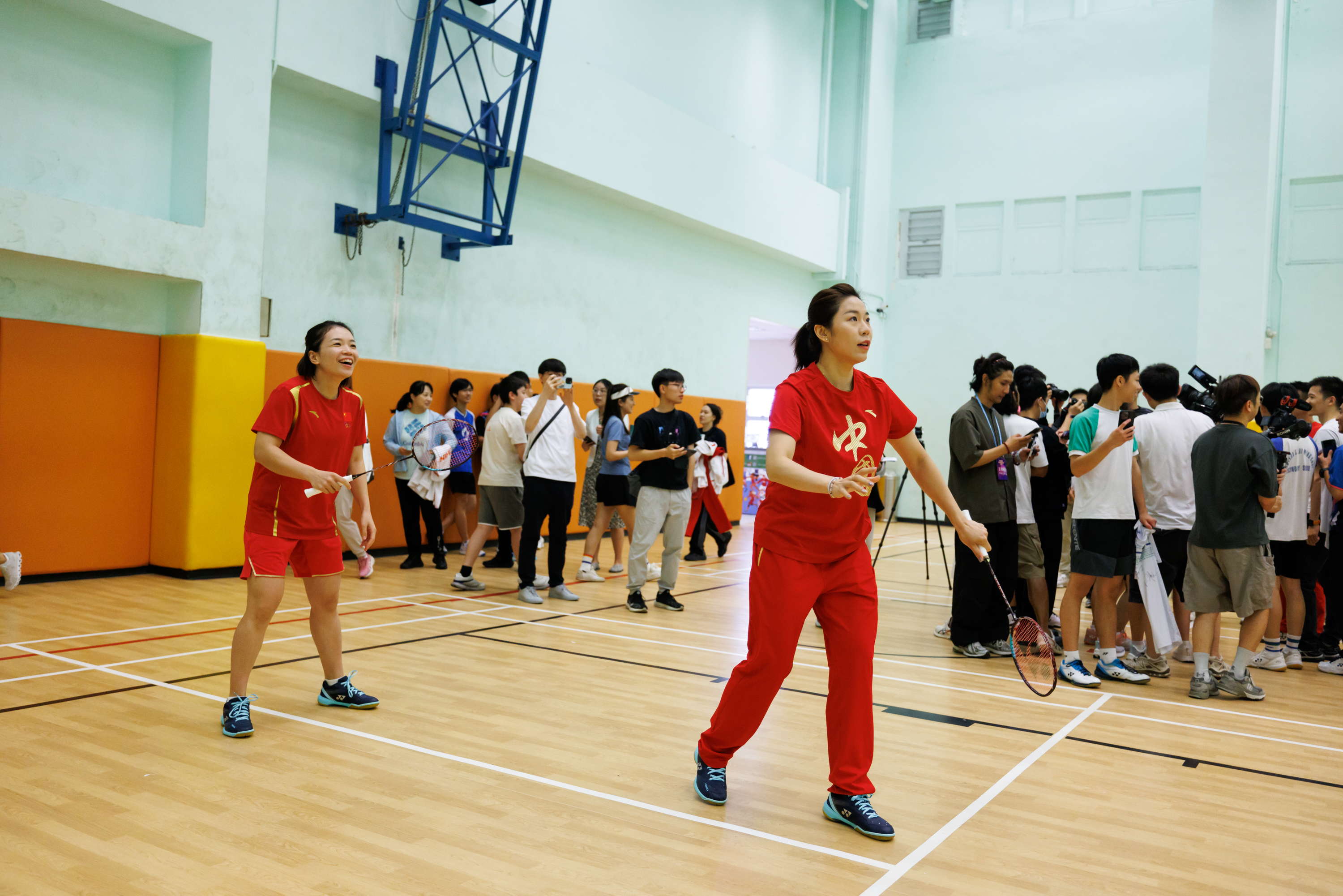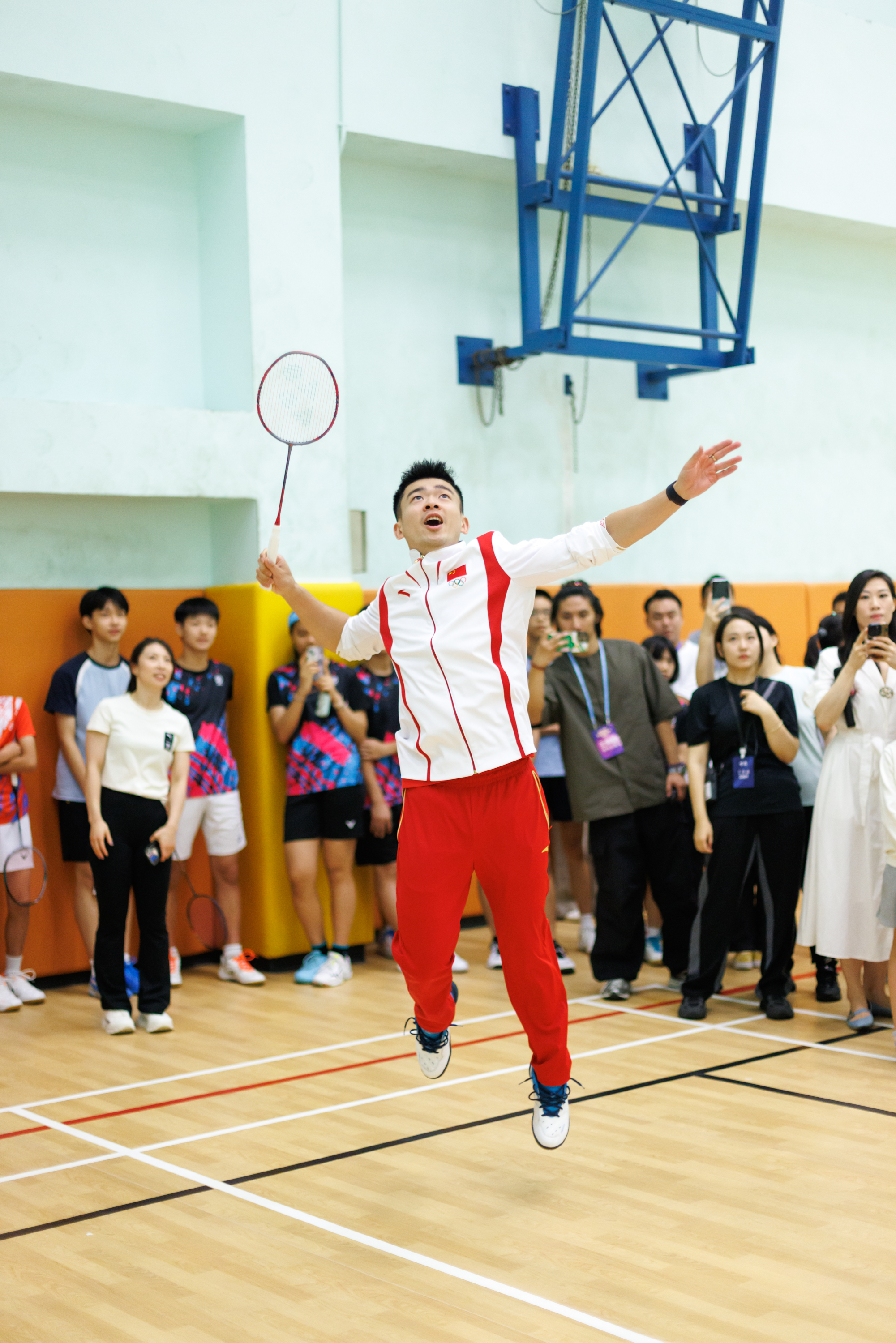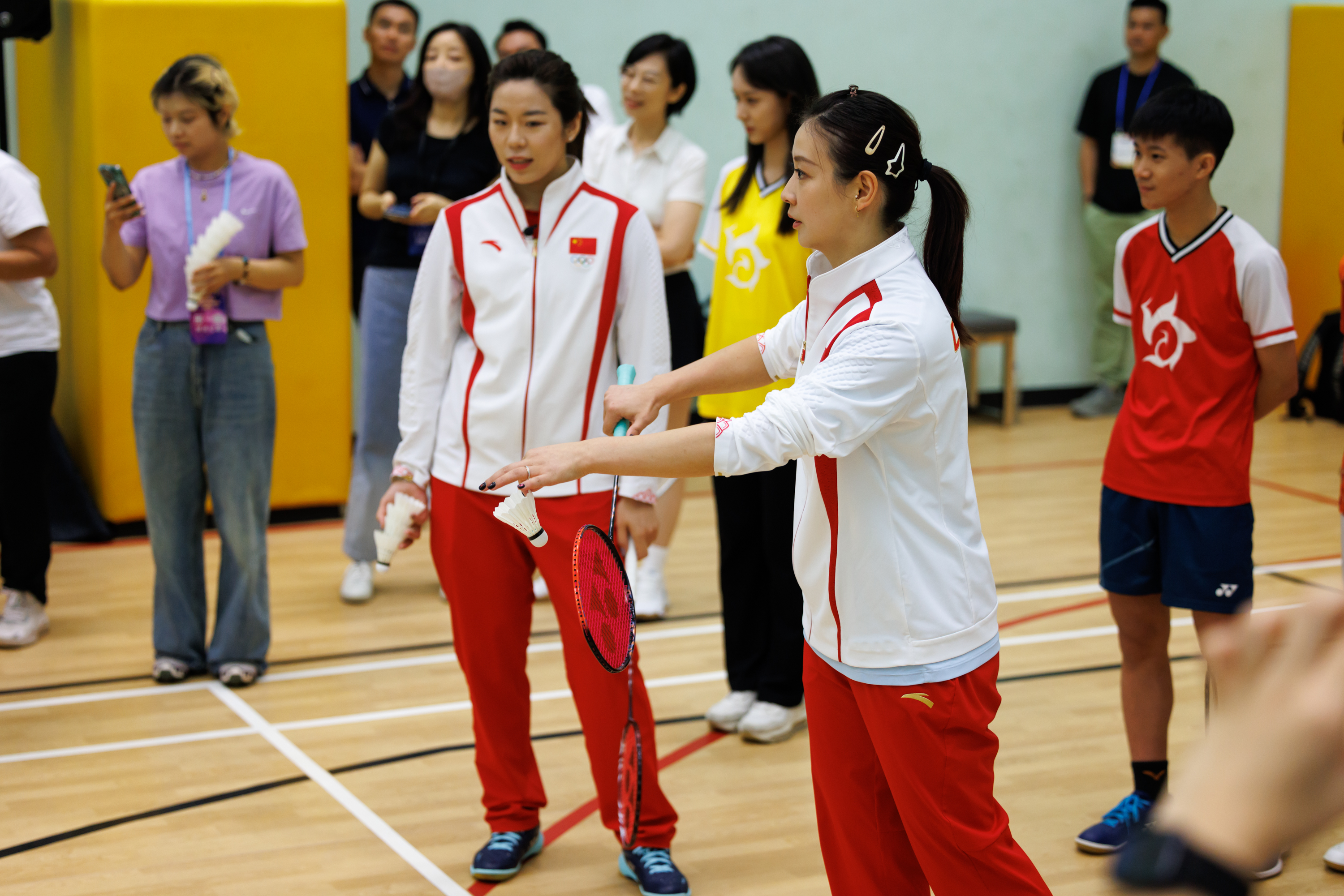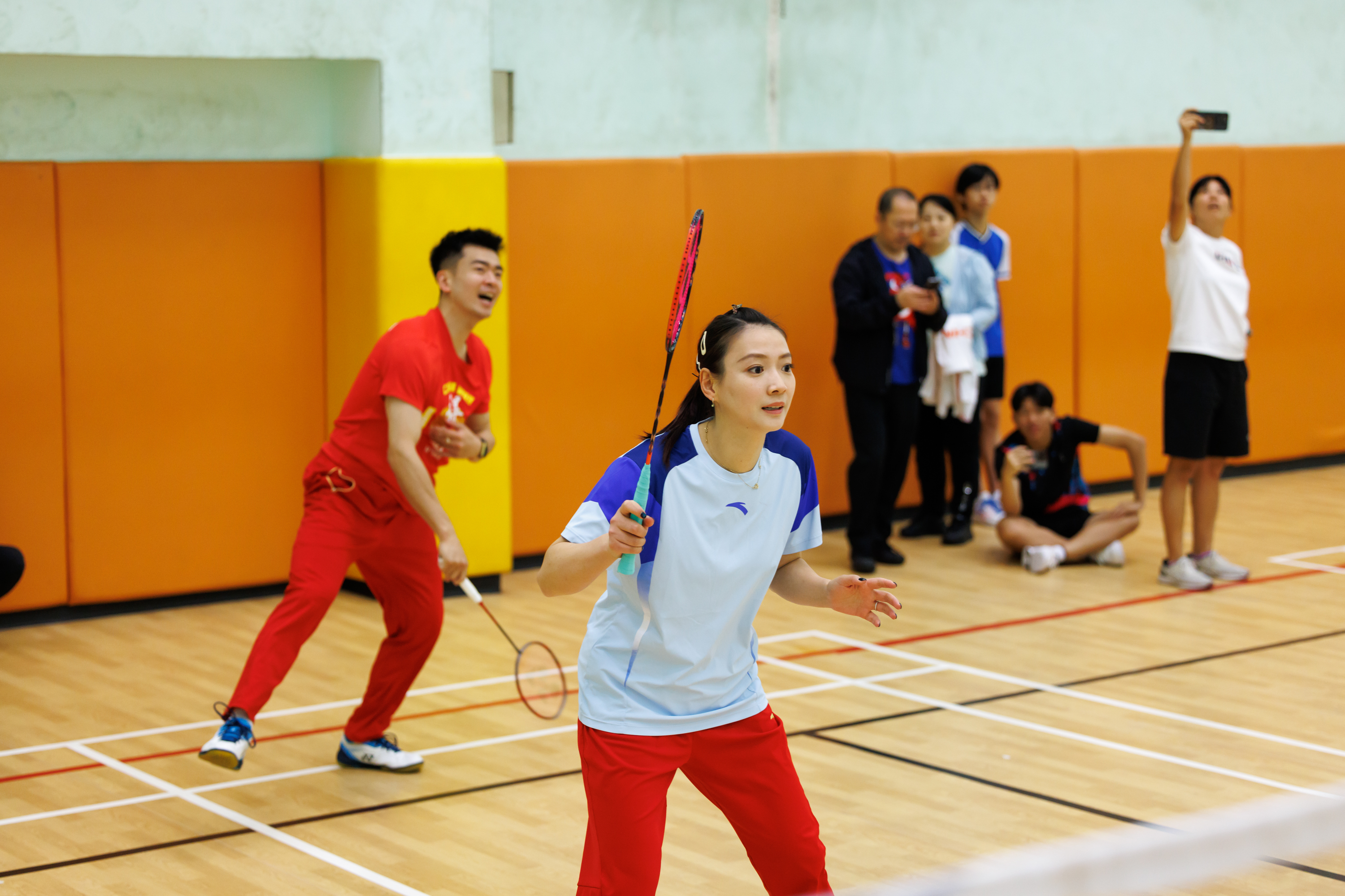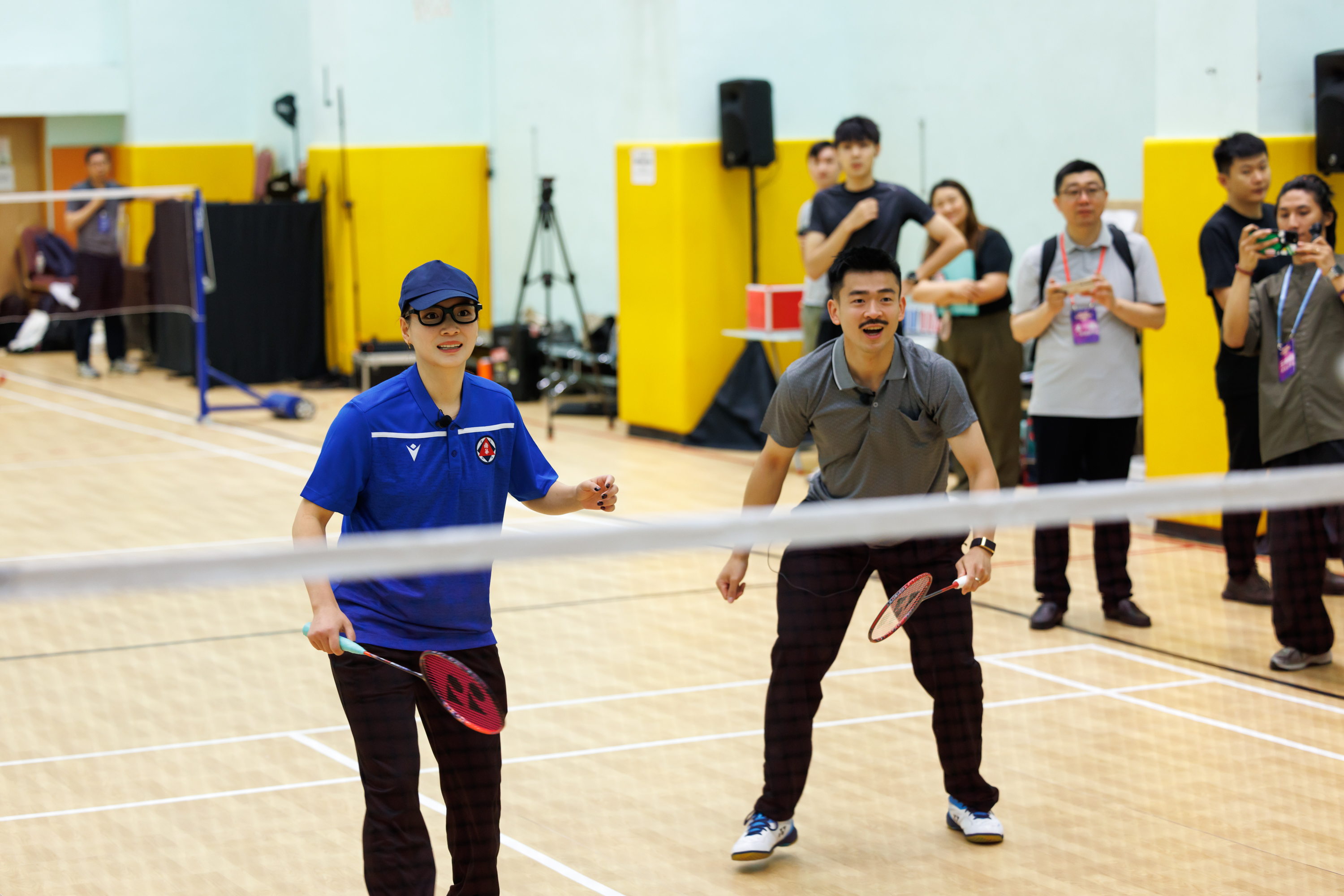 首先以「神秘大咖」身份亮相的是巴黎奧運會羽毛球混雙冠軍「雅思」組合鄭思維/黃雅瓊。他們以一種獨特的方式與公眾見面——黃雅瓊喬裝化身為球場工作人員、鄭思維則扮成發福中年人隱密到達場地,以不專業體態和不矚目形象出現,混入打球人群中,與市民切磋球技。