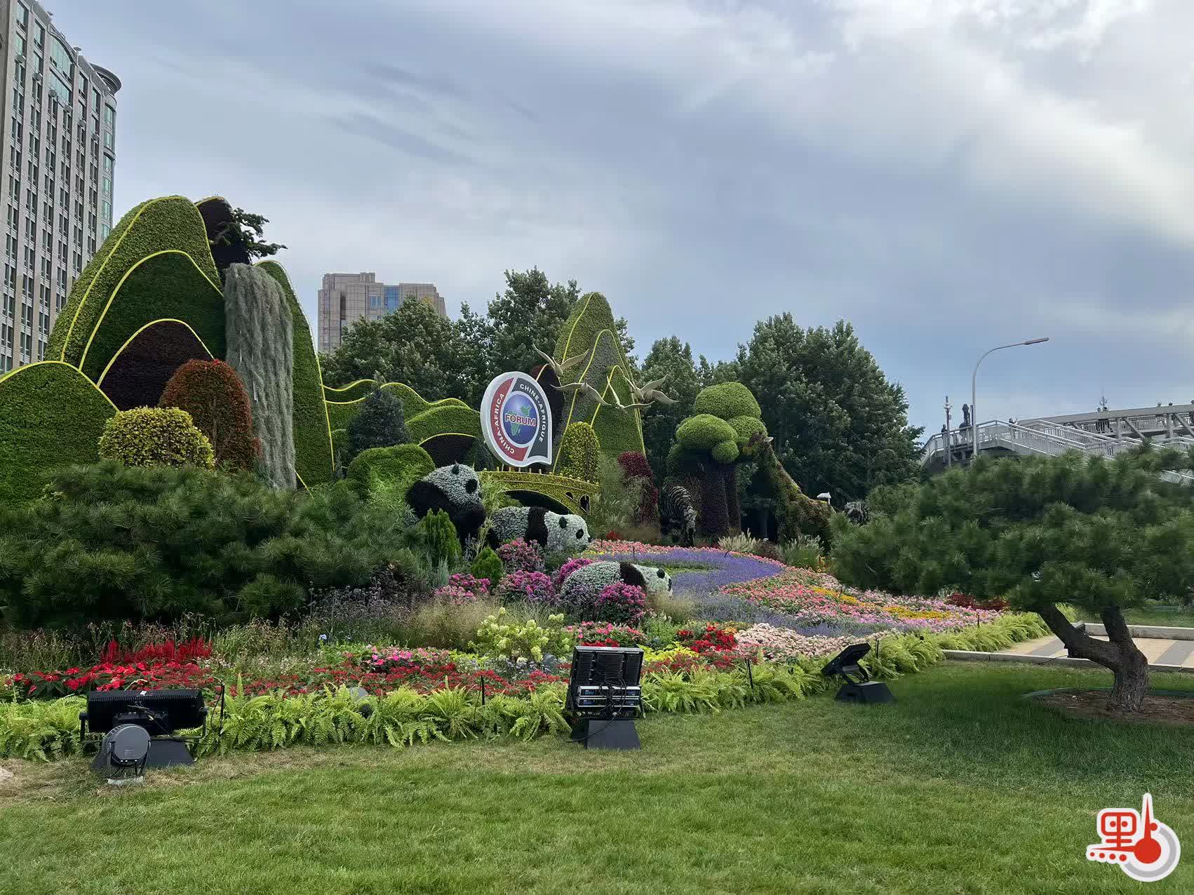其中,位於長安街東單路口東南的「命運與共」花壇,以高超的園藝技巧還原了憨態可掬的國寶熊貓和來自非洲大草原的斑馬、長頸鹿等動物,寓意中非友誼長存,共同書寫命運與共的新篇章;路口西北的「合作共贏」花壇,將貨輪、飛機、以及「中國名片」高鐵動車組融入了設計,寓意中非秉持互聯互通的友好合作精神,共同建設美好未來;位於西單路口西北的「美好藍圖」花壇以科技園區為設立理念,展示了腦機接口技術、智能機器人、無人送貨車等尖端科技產品,寓意推動中非開展科技創新合作,共繪高水平中非命運共同體新圖景;而「共同發展」花壇則以首都花園商圈為主景,配以非洲特色農產品以及工藝品等,寓意中非通過貿易互利合作,展現蓬勃的經濟活力。