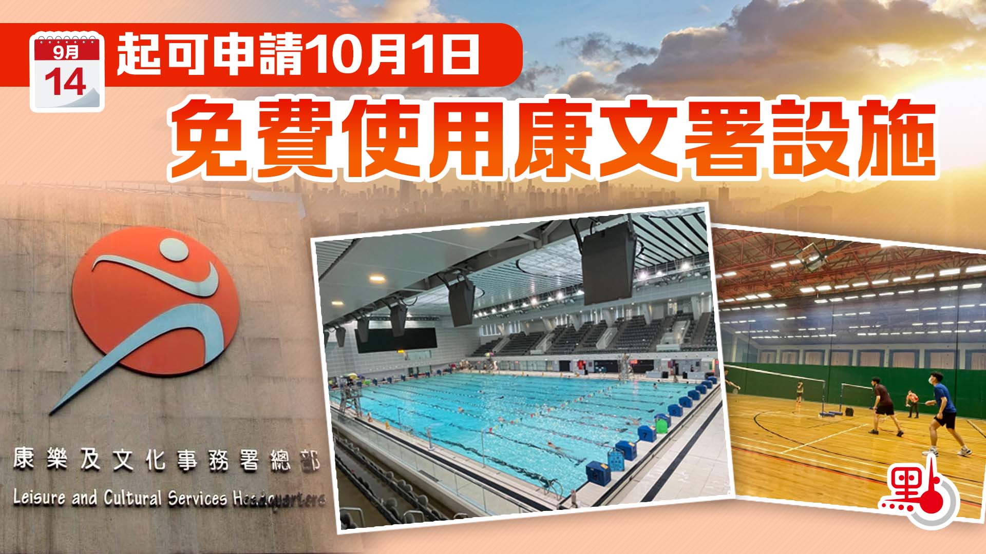 康文署10月1日免費開放供市民使用的康樂設施包括: