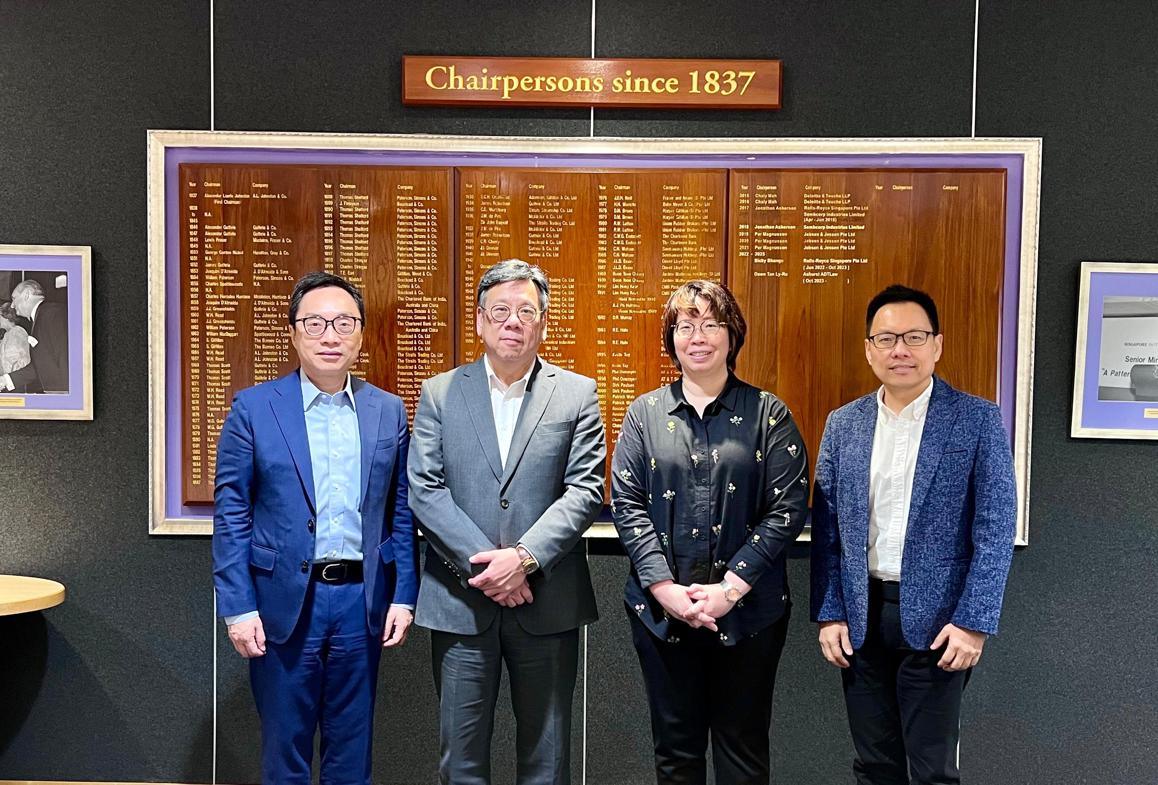 丘應樺今日(24日)與新加坡經濟發展局主席方章文會面,了解新加坡的最新發展,並就促進投資交換意見。他表示,期望香港與新加坡在不同領域深化合作,以建立更緊密的雙邊關係。