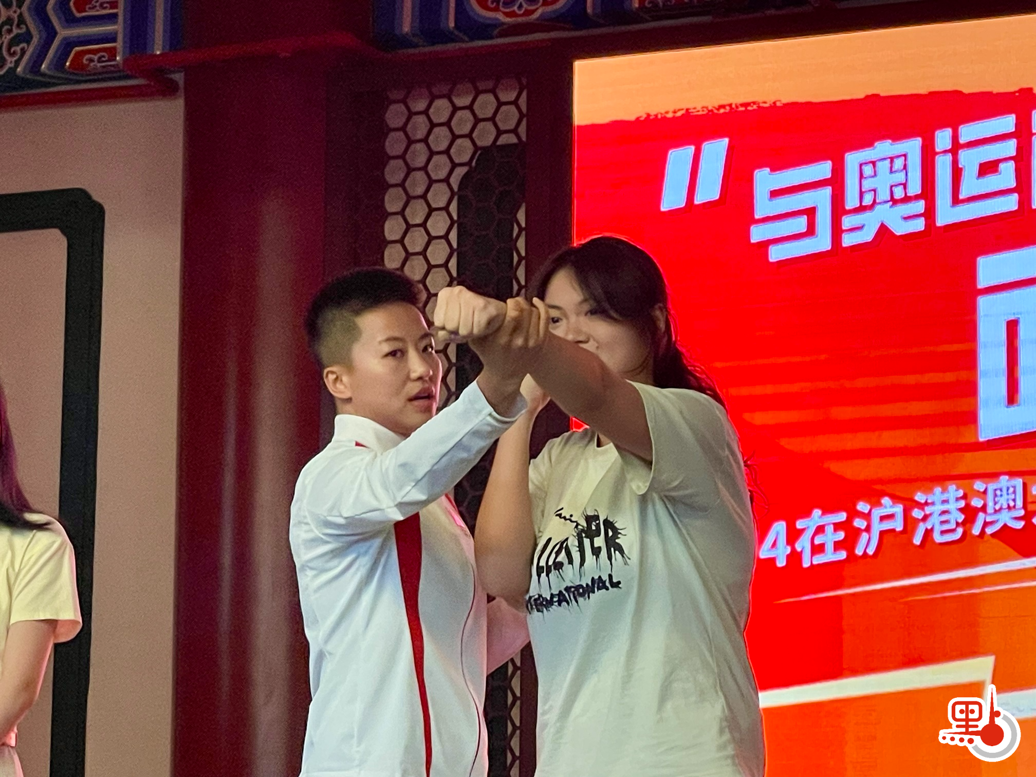 除了感悟分享,吳愉還現場教學,同學們按照奧運冠軍標準學習「前手」「後手」,領悟拳擊和散打貫通之處。同學們踴躍報名上台,女同學出拳可能不及男生有力,吳愉鼓勵她說,「學習一門技術不是為了攻擊別人,而是為了保護自己。」活動現場的互動環節,港澳學子們爭先恐後想要上台接受奧運冠軍的指點。而當吳愉與王德新教練親身演示拳擊對練,吳愉乾淨利落,充滿力量的出拳更是引來台下學子們的錄影,紛紛舉起手機記錄下令他們震撼的時刻。