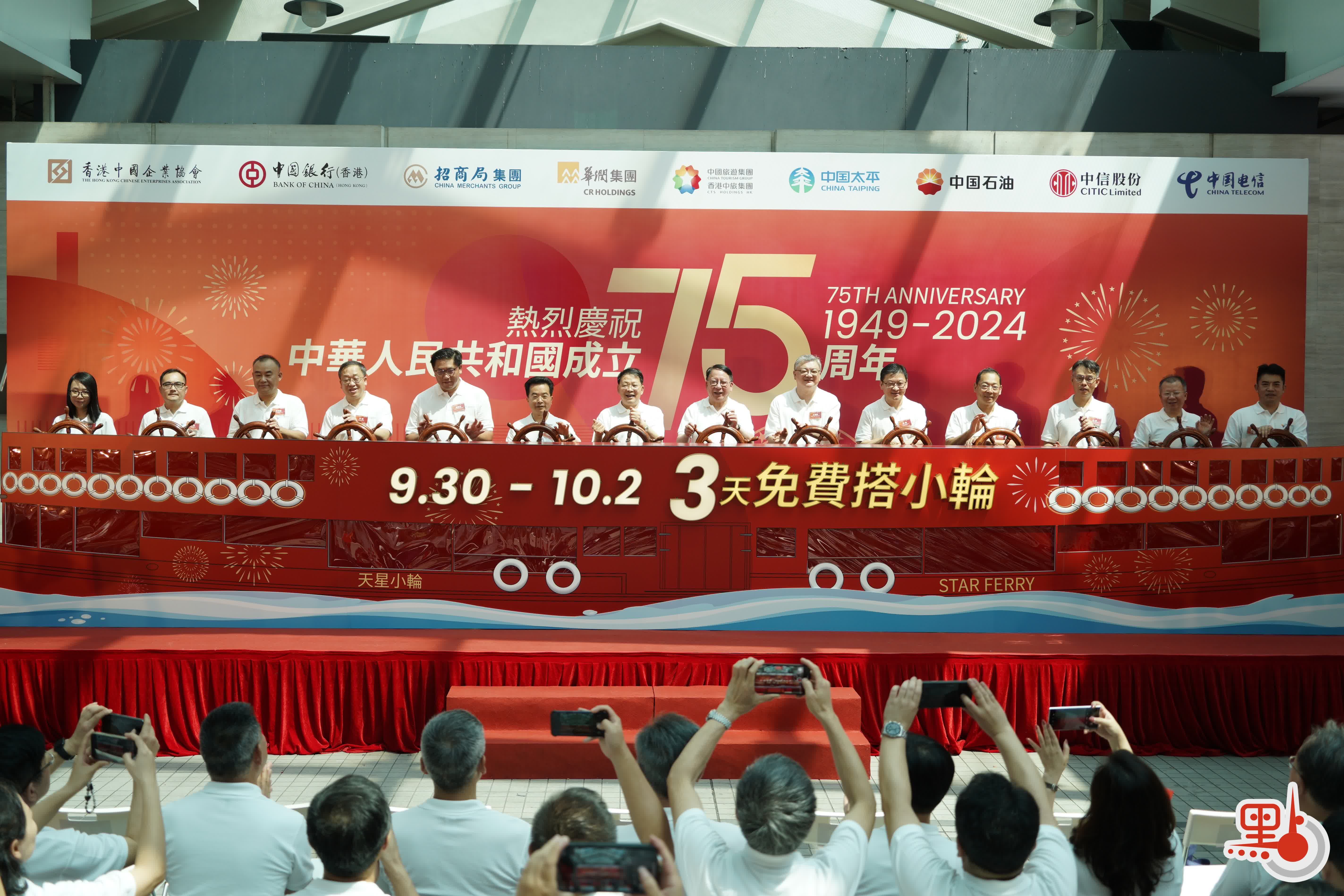 【點新聞報道】為慶祝中華人民共和國成立75周年,香港中國企業協會籌辦一系列慶祝活動,其中由中銀香港、招商局集團、華潤集團、中旅集團、中國太平、中信股份、中石油香港、中國電信等企業聯合主辦的「中企服務進社區——渡輪免費搭乘活動」今日(30日)舉行啟動儀式。