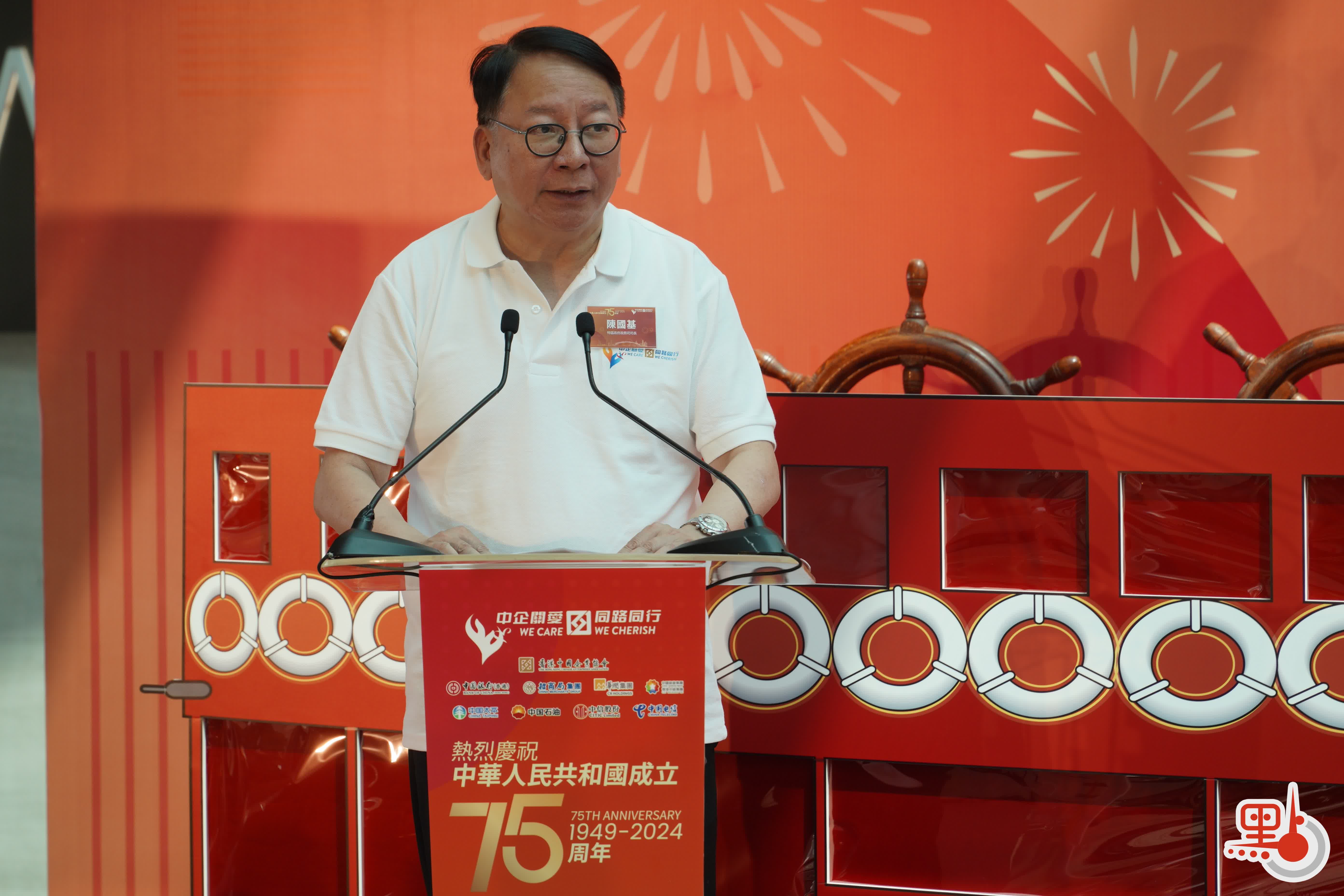 政務司司長陳國基感謝中企協會舉辦國慶系列活動,形容國家的綜合國力不斷提升,在國際舞台上舉足輕重,令人感到自豪。他又提到,特區政府牽頭連繫各界,在國慶期間推出各式各樣的優惠,於社區廣泛營造熱烈慶祝國慶的氣氛。