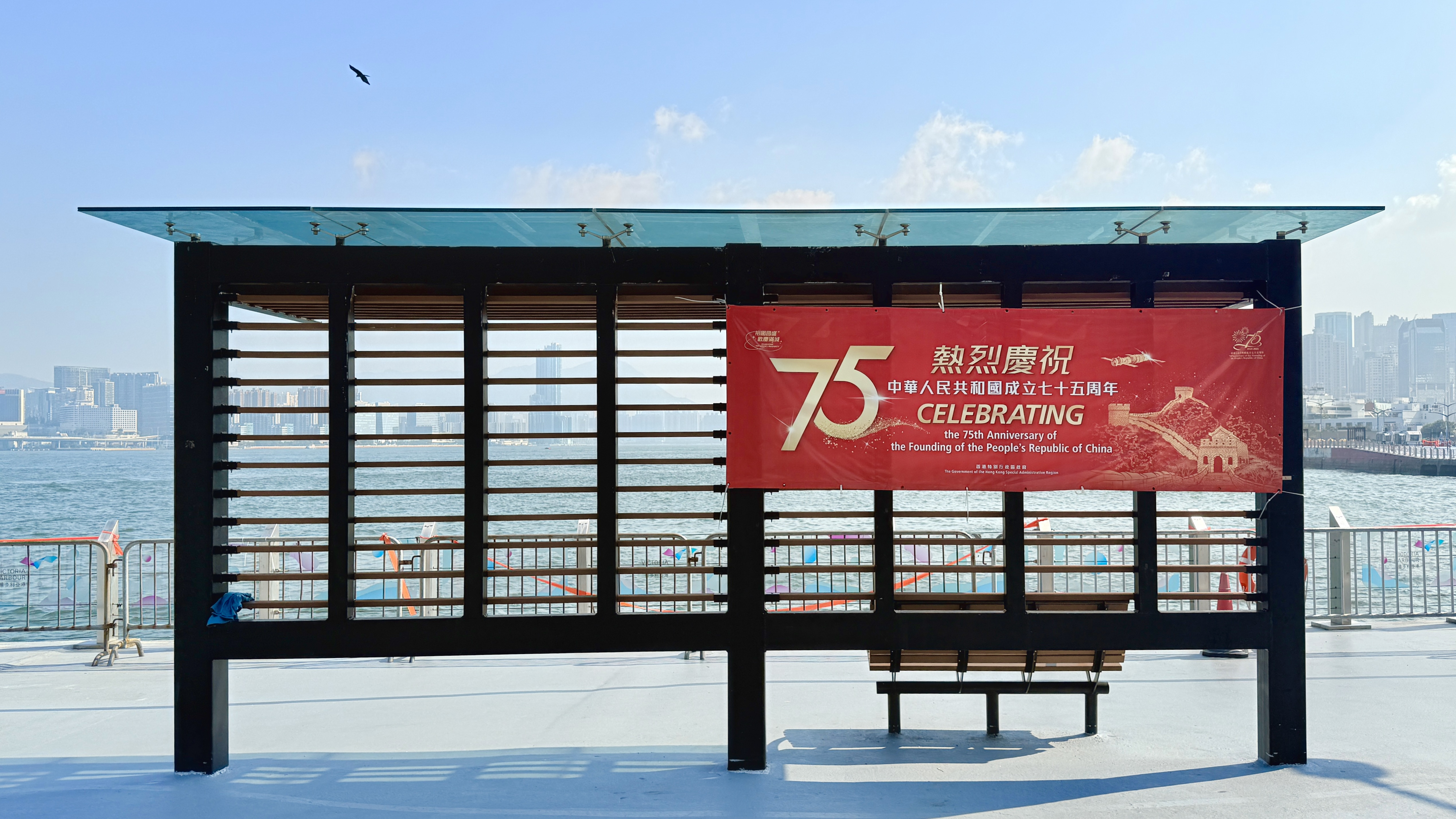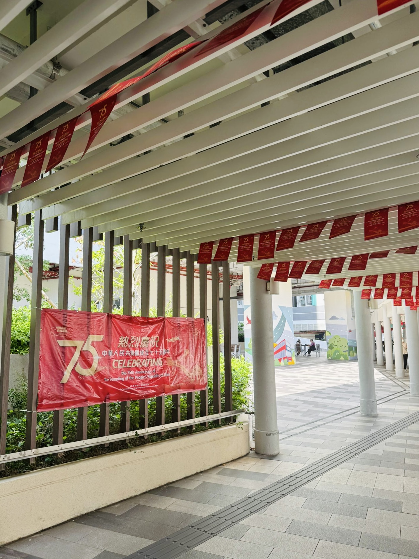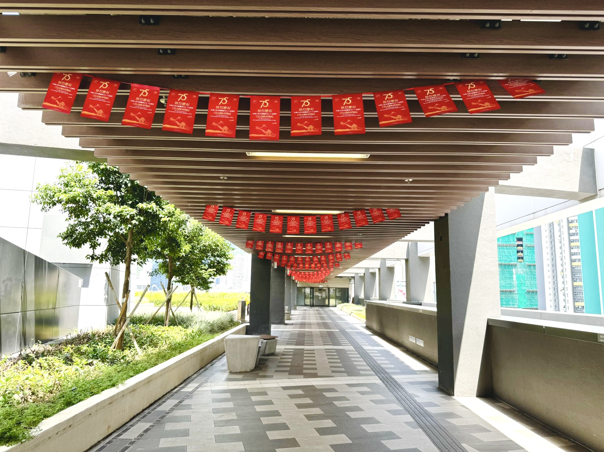 在香港天水圍公園、北區公園,澳門大三巴、鄭家大屋等文旅休閒熱門地,中海物業增設了帶有國慶元素的花藝布置和大型展板;在香港北區運動場、屯門大會堂、元朗劇院、沙田大會堂、灣仔海濱長廊等室外廣場與海濱走廊上,中海物業亦均掛起國旗、貼起橫幅。秋日艷陽下,一抹抹「中國紅」格外艷麗,吸引市民遊人駐足觀賞、打卡。