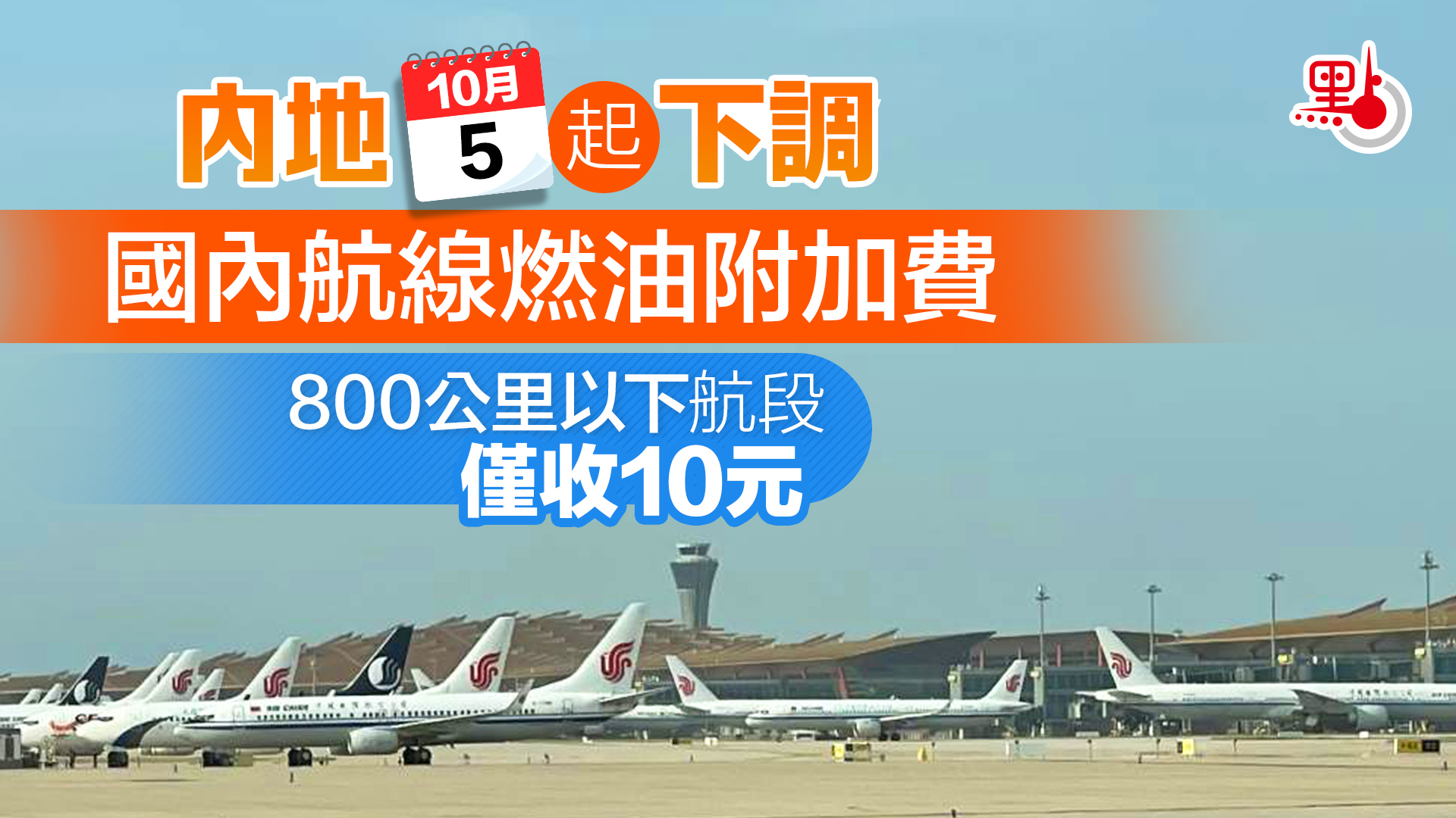 內地今起下調國內航線燃油附加費 800公里以下航段僅收10元