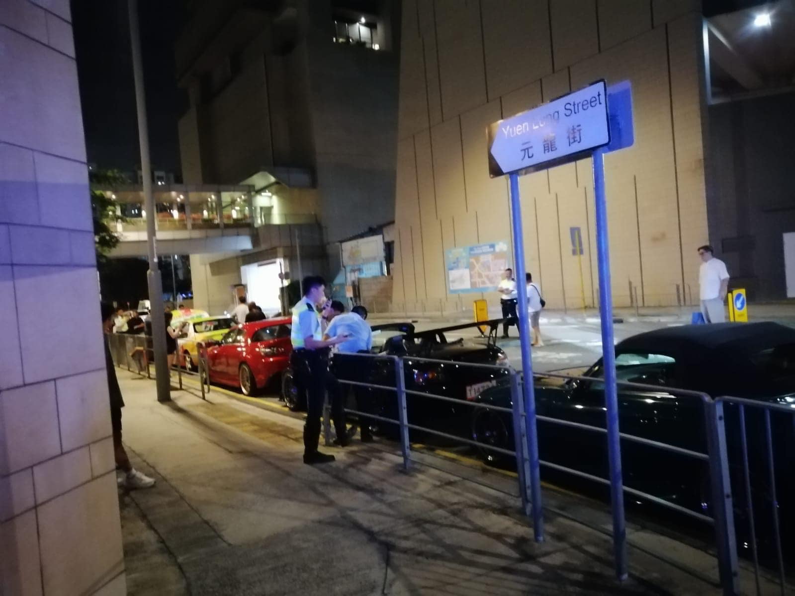 從市民發布至社交平台的圖片可見,昨晚在元朗聚集的私家車有豐田MR2及MRX、本田S2000、萬事得RX-8等多輛跑車。有警員接報到場,多輛「辣跑」在元龍街順序一字形排開候查,逾20名「車手」站在路旁,並有拖車到場。