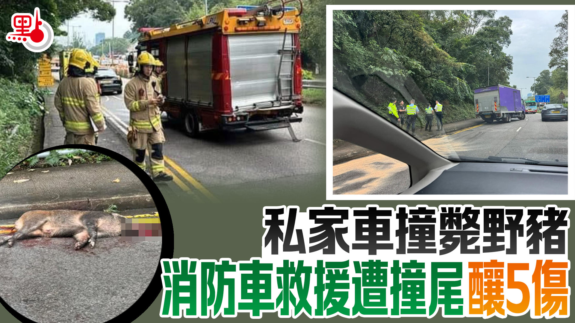 私家車撞斃野豬 消防車救援遭撞尾釀5傷