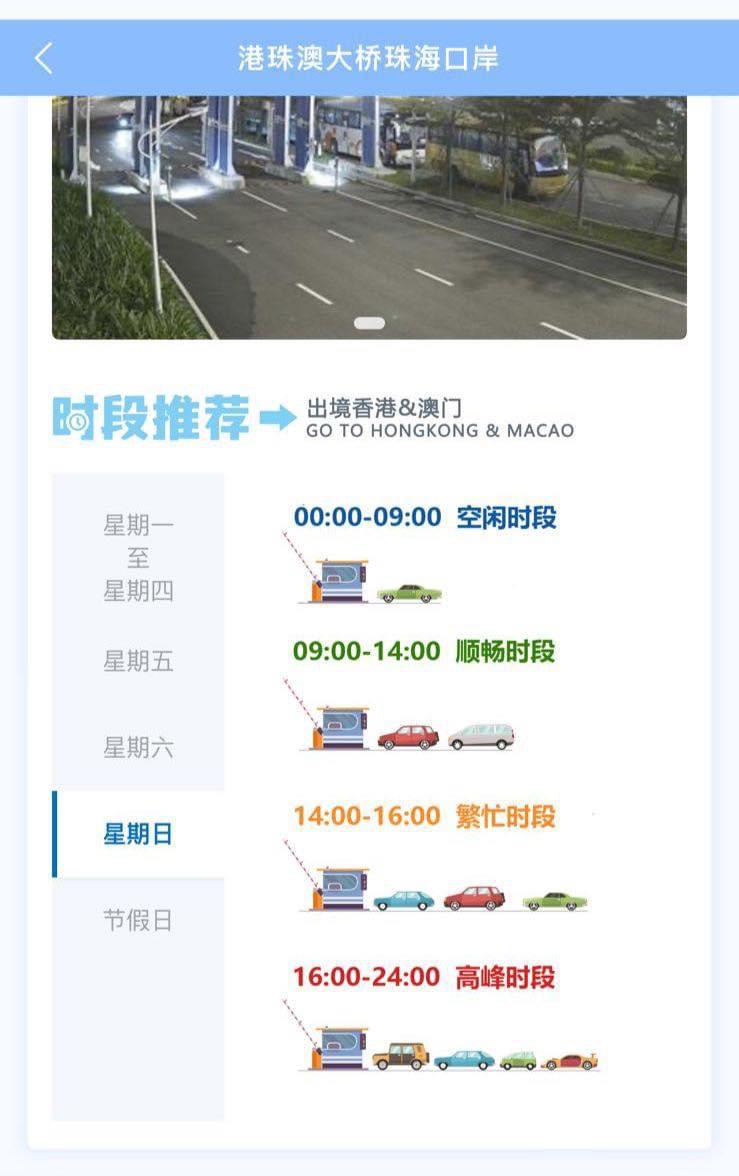 另外,市民可透過運輸署流動應用程式「香港出行易」查閱港珠澳大橋香港口岸出境及入境客車通關廣場的交通快拍,以及透過「港珠澳大橋珠海口岸」或「珠海發布」微信公眾號內的「大橋口岸實時通關」服務,查詢大橋珠海口岸的車輛實時通關情況。