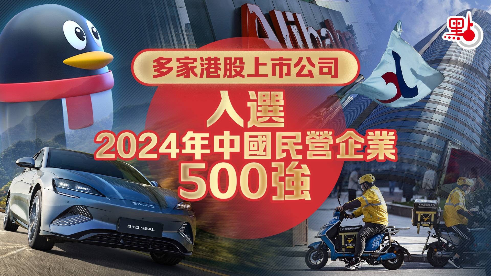【點新聞報道】全國工商聯12日在甘肅蘭州發布「2024中國民營企業500強」。結果顯示,京東集團、阿里巴巴(中國)有限公司、恆力集團有限公司、華為投資控股有限公司、浙江榮盛控股集團有限公司位居前五。同時,排名前十位的公司中港股上市企業佔五成,包括京東集團-SW(09618)、阿里巴巴-W(09988)、騰訊控股(00700)、比亞迪股份(01211)以及吉利汽車(00175)。