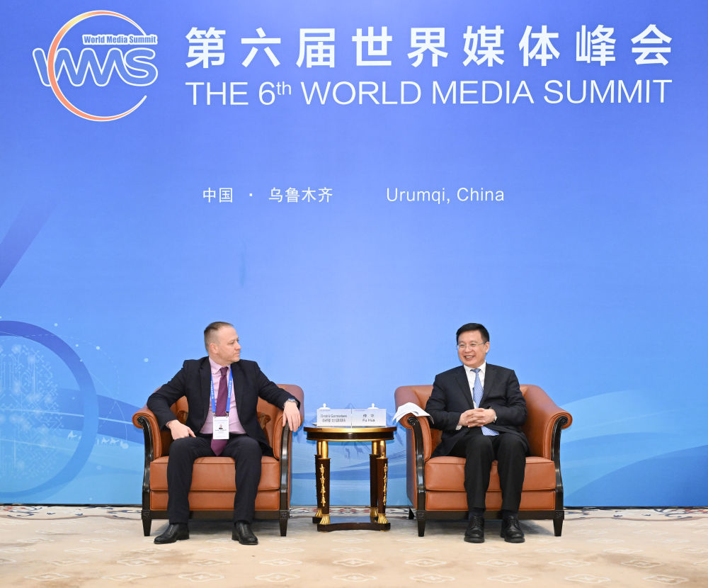 據新華社報道,新華社社長傅華13日在烏魯木齊分別會見今日俄羅斯國際通訊社副總編輯德米特里·戈爾諾斯塔耶夫、匈牙利ATV集團首席執行官科瓦奇·陶馬什等來華出席第六屆世界媒體峰會的部分外國媒體負責人。