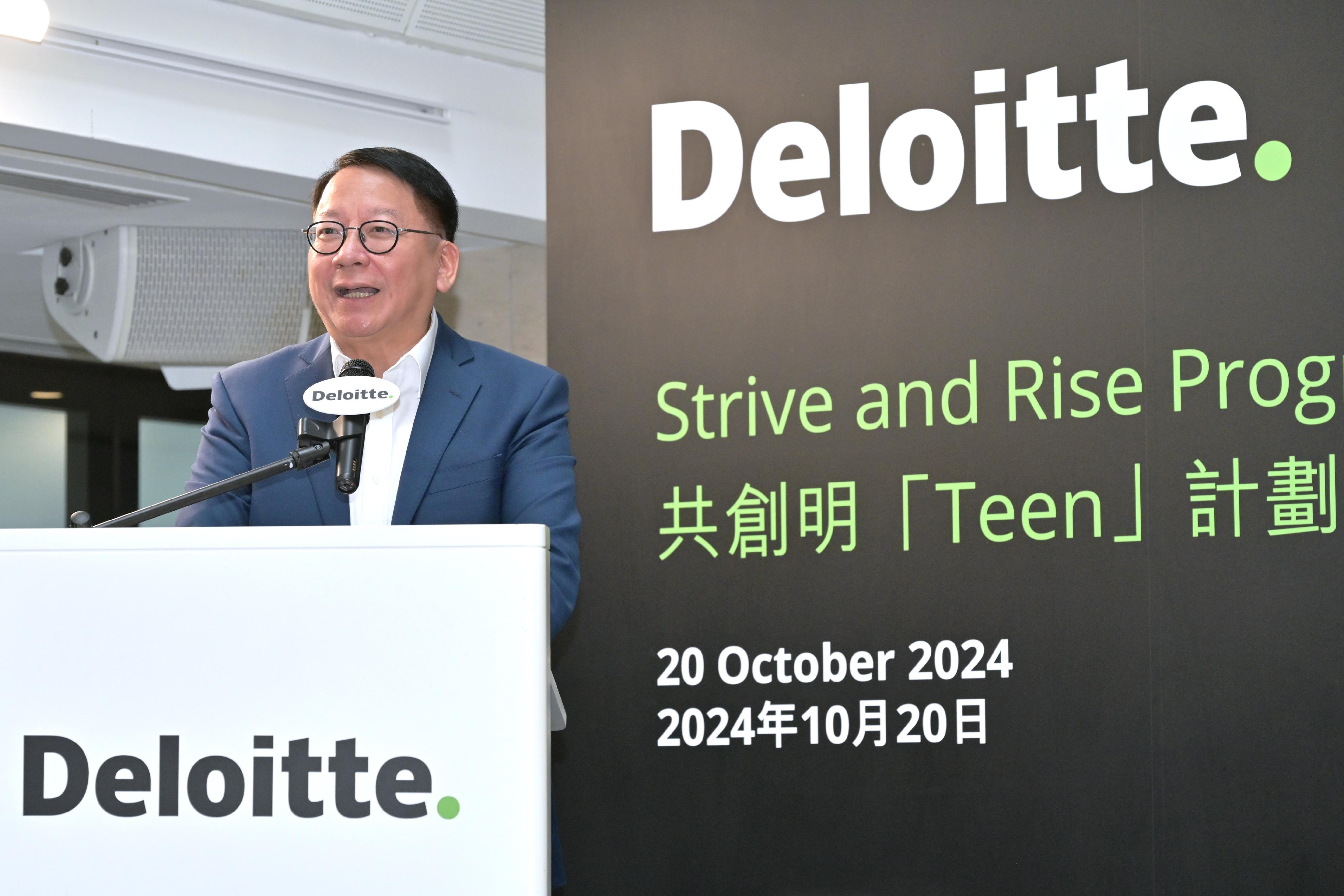 【點新聞報道】政務司司長陳國基今日(20日)出席由德勤中國為「共創明『Teen』計劃」舉辦的「德勤樂園」活動並致辭。他表示,共創明「Teen」計劃即將開展第三期,期望各界繼續支持,並鼓勵更多人加入導師行列,共同培育年輕一代,令他們建立正面價值觀,為未來發展訂立目標。